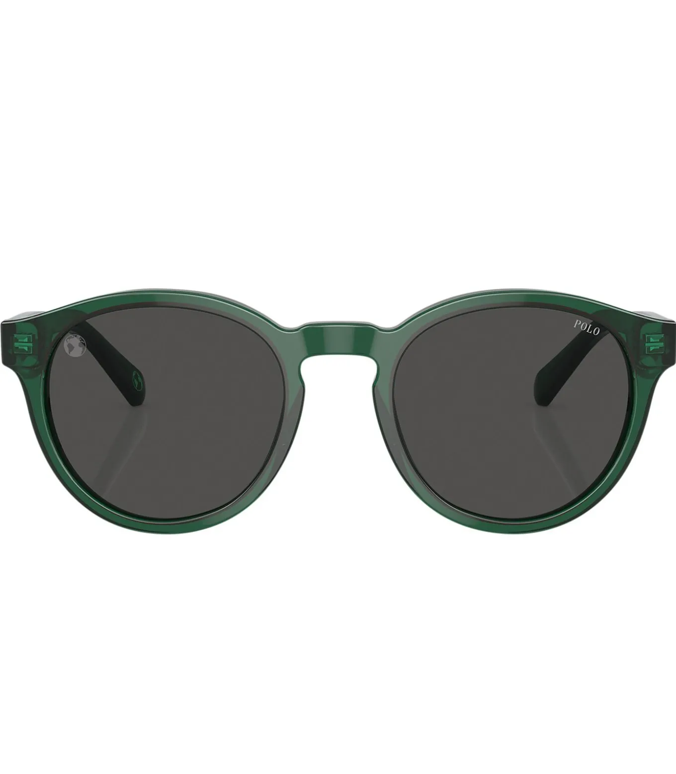 De 0PH4192 ronde zonnebril van Ralph Lauren wordt geleverd in de kleur groen, met branding op de armen en lens. Deze zonnebril wordt geleverd met een zachte hoes en heeft een ronde vorm. Afmetingen: Lensbreedte: 51 mm, Lenshoogte: 43 mm, Brugbreedte: 21 mm, Lengte poot: 145 mm.