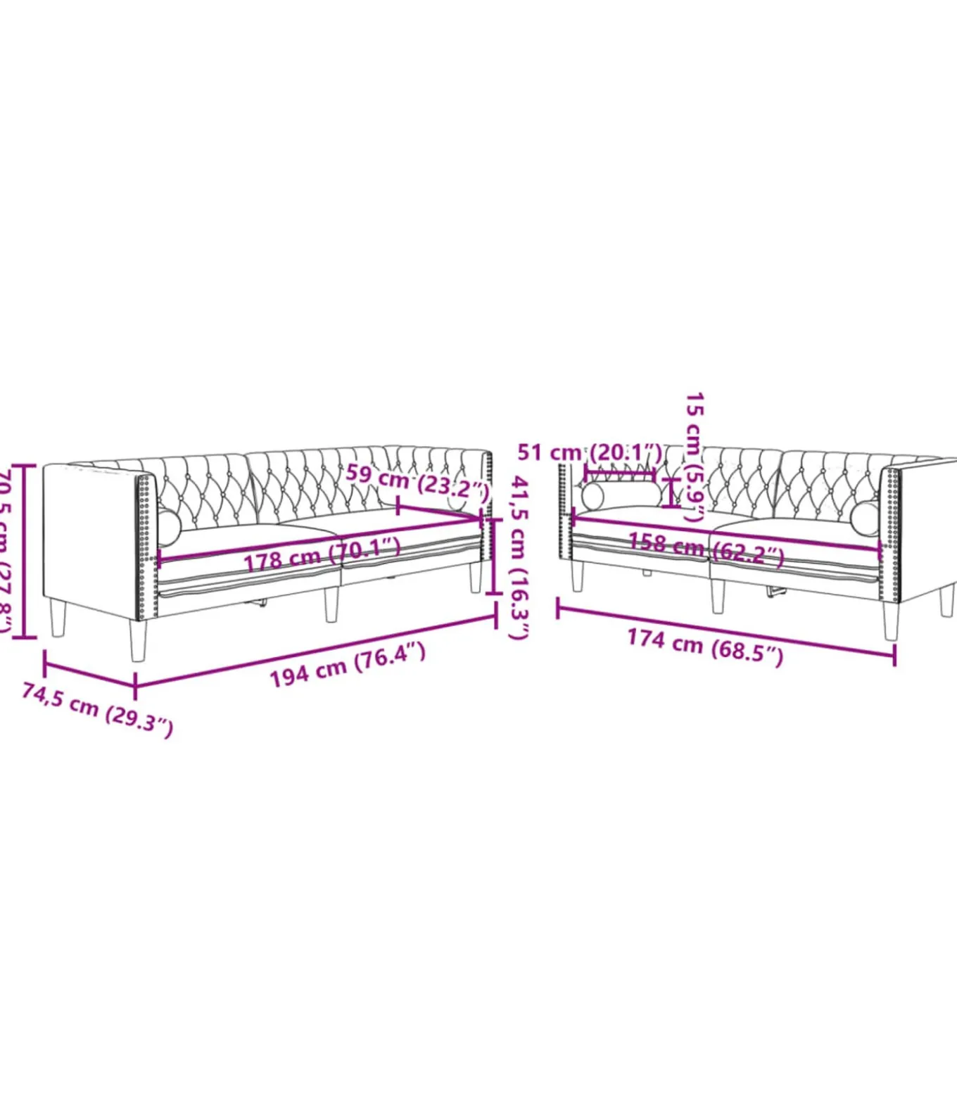 Deze bankenset in Chesterfield–stijl is een uitstekende keuze om gezellig in te kletsen, te lezen, tv te kijken of te ontspannen. Hij is een echte blikvanger in je huis.