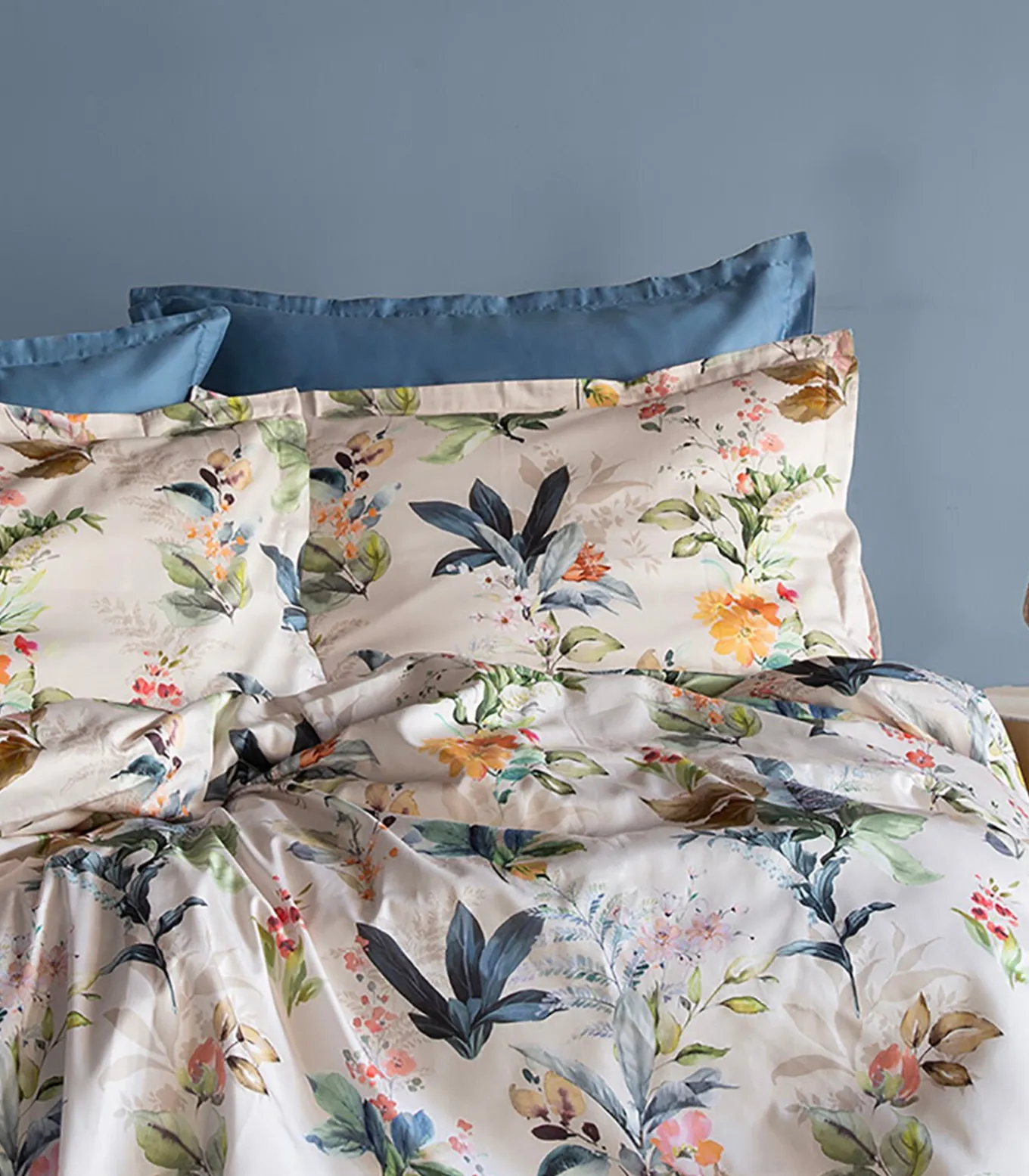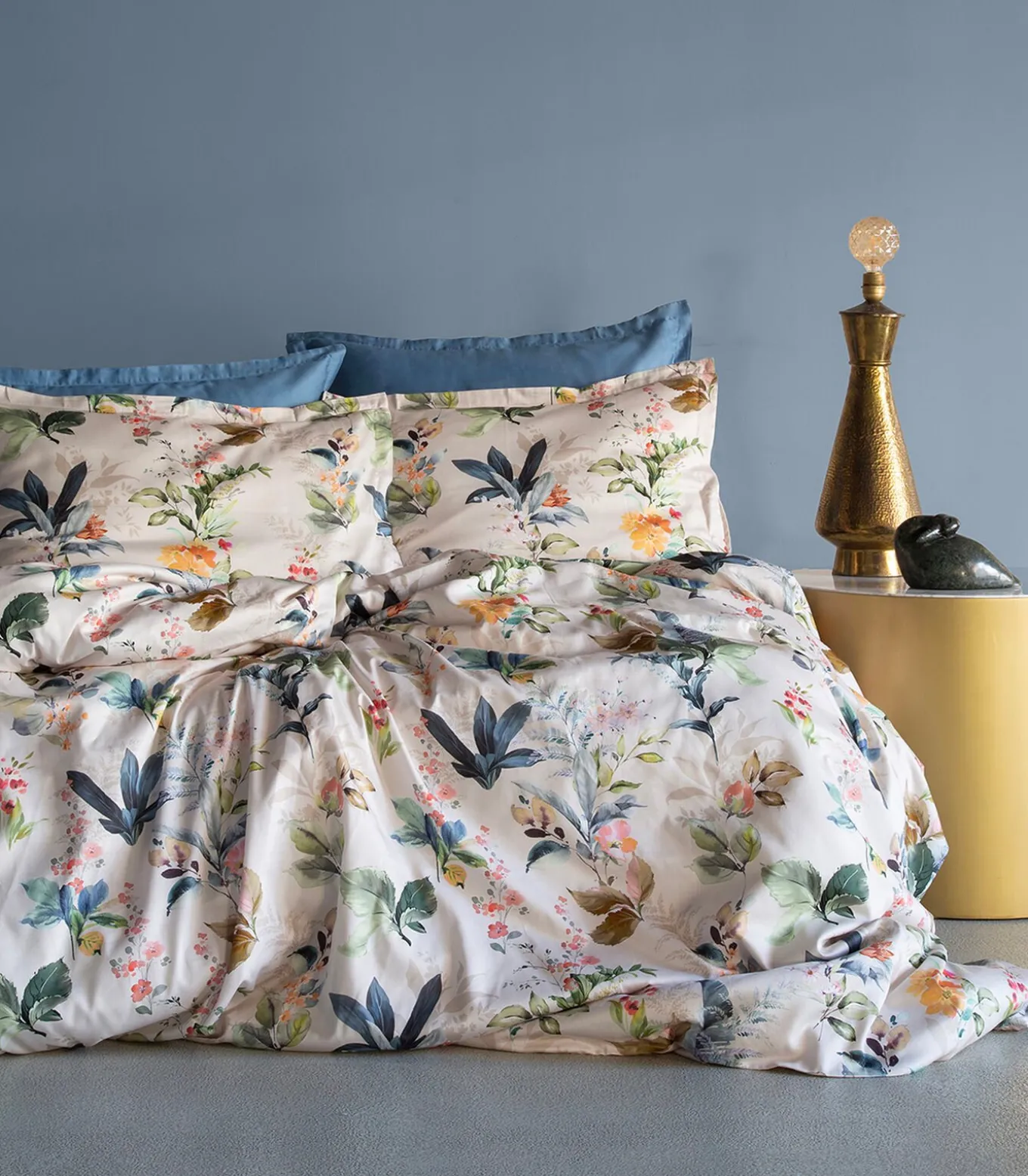 BEDRUKTE KATOENZIJD – 2 persoons beddengoed – 3 stuks: 1 dekbedovertrek 240×220 cm Knoopsluiting + 2 kussenslopen 63×63 cm met vlakke volants 3 cm. – Samenstelling 100% gekamd katoen 210 TC. (82 draden/cm2) Machinewasbaar op 60°C. OEKO–TEX gecertificeerd product: het Oeko–Tex® label garandeert dat gecertificeerde artikelen vrij zijn van schadelijke stoffen die schadelijk kunnen zijn voor de gezondheid.Dit beddengoed is ontworpen voor eindeloos comfort.De gebruikte vezel is gekamd katoen, wat het edelste deel van katoen is. De vezels zijn lang en zeer zacht.De weeftechniek van het satijnkatoen geeft het materiaal een stralende, zachte en zeer zijdeachtige uitstraling. De stof is elegant, duurzaam en zeer comfortabel. De kleuren zijn eigentijds, de lijn is puur en verfijnd, en de afwerkingen zijn minutieus.Voor een goede nachtrust, kiest u voor comfortabele en mooie lakens: uw welzijn is verzekerd….Om de glans van de kleuren te behouden, raden wij wasbeurten aan op 60 °.Als u kiest voor drogen in de droogtrommel, kies dan voor een gematigde temperatuur om de vezels te sparen.Uw beddengoed zal zachter worden na meerdere wasbeurten.