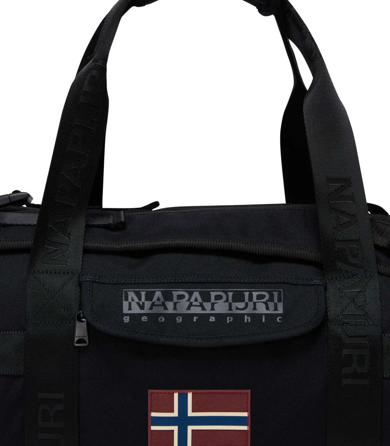 De Napapijri Bering Travel Duffle Bag van 24,5 liter in Black Beauty combineert functionaliteit met duurzaamheid. Dankzij het zijvak met merklogo en rits heeft u altijd toegang tot uw belangrijkste spullen. De afneembare schouderbanden bieden handige draagmogelijkheden, terwijl de mesh steekvakken aan de binnenkant uw spullen georganiseerd houden. Deze reistas is gemaakt van minstens 30% gerecyclede grondstoffen en is een milieubewuste keuze voor al uw reisbehoeften. Stijlvol en praktisch, perfect voor weekendtrips of een bezoekje aan de sportschool. Afmetingen: H 28 cm x B 46 cm x D 28 cm. Inhoud: 24,5 liter.