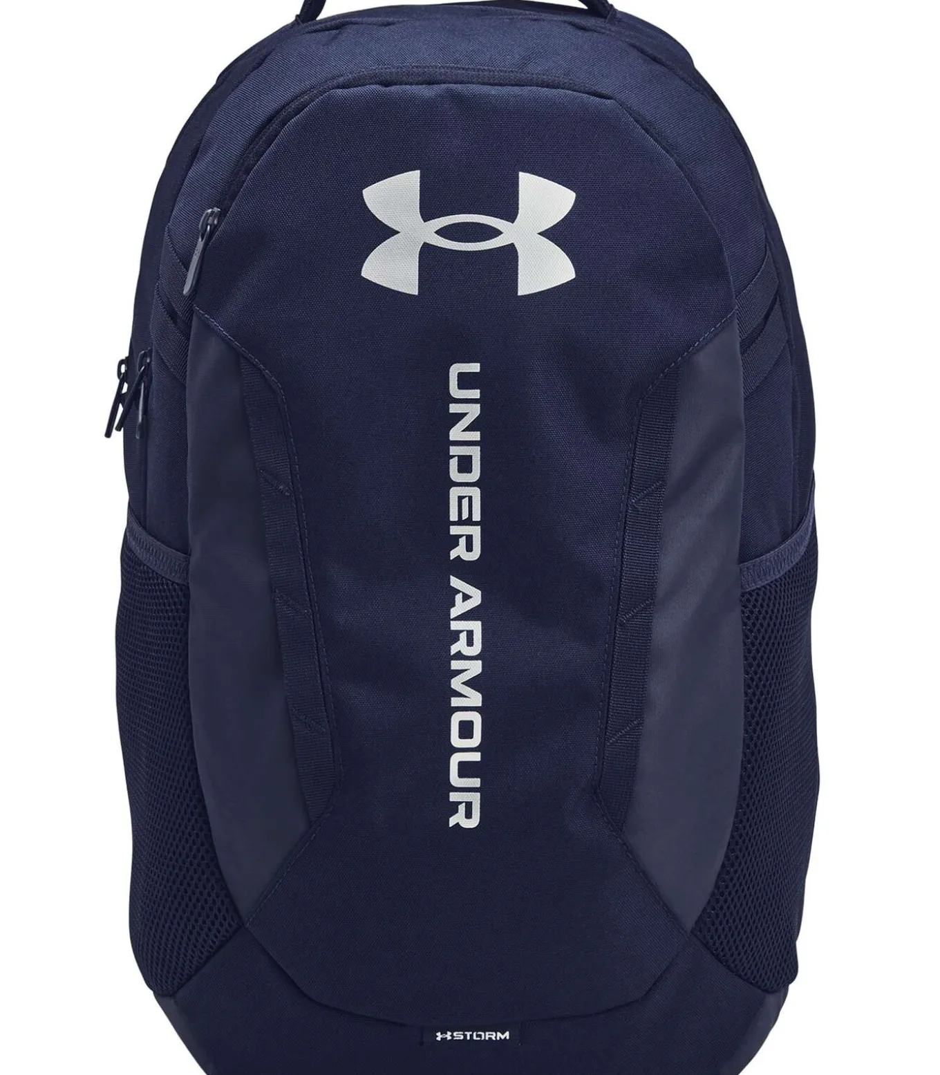 De Under Armour 29L Hustle 6 Rugzak in Midnight Navy/Metallic Silver combineert geavanceerde functies met een stijlvol design. De waterbestendige constructie beschermt je spullen, terwijl het zacht gevoerde laptopvak ruimte biedt aan een laptop tot 16 inch. Het tweede compartiment biedt extra opbergruimte en het veilige ritsvak aan de voorkant is perfect om kleine spullen veilig te bewaren. De zijvakken voor waterflessen zorgen voor extra gemak en de gewatteerde achterkant en verstelbare banden zorgen voor comfort, de hele dag door. Afmetingen: H 51 cm x B 32 cm x D 16 cm. Inhoud: 29 liter.