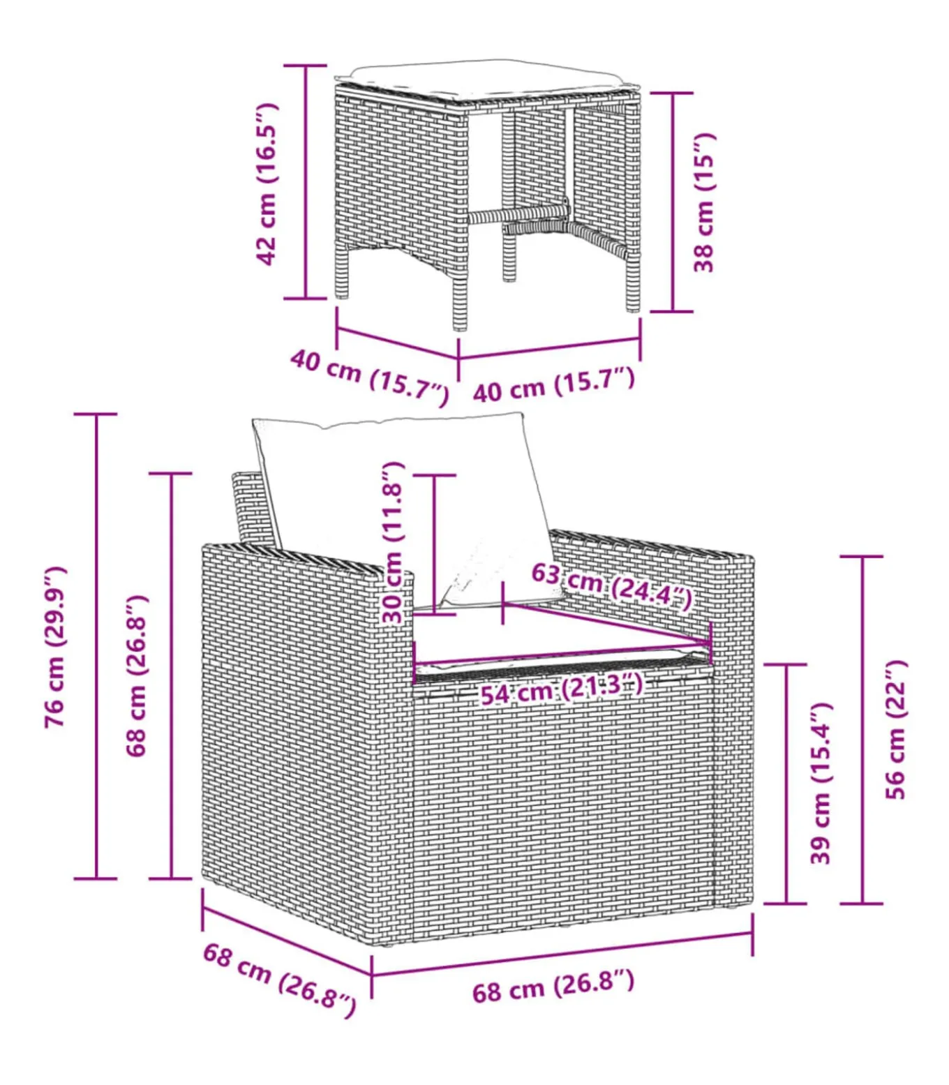 Afmetingen: 40 x 40 x 38 cm (B x D x H)