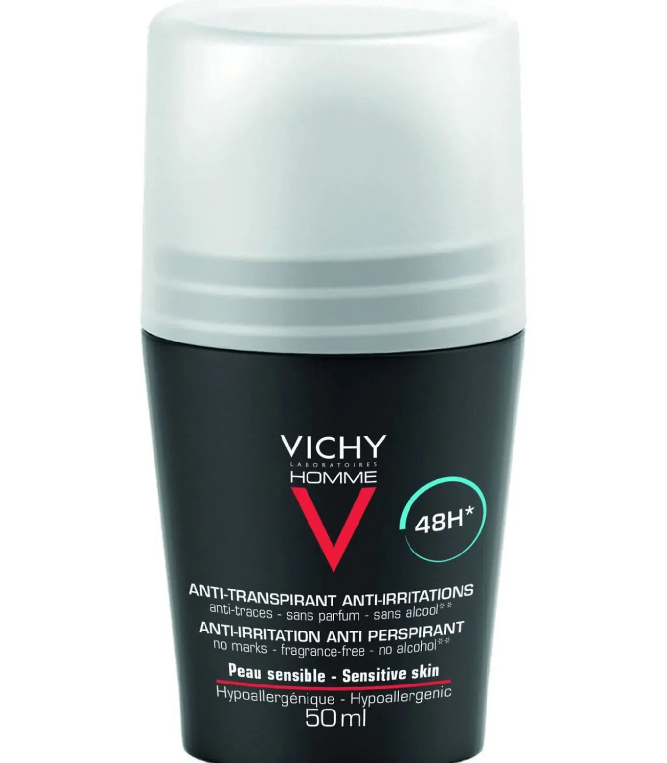 Vichy Homme Anti–Zweet Deodorant Anti–Irritatie 48H Roll–On 50 ml is de ideale oplossing voor mannen die op zoek zijn naar effectieve, langdurige deodorantbescherming. De innovatieve formule, verrijkt met anti–zweet werkstoffen en kalmerend oligo–zink, reguleert de transpiratie en biedt een gevoel van frisheid en comfort. Speciaal ontwikkeld voor gevoelige huid, biedt deze Vichy deodorant 48 uur lang continue bescherming en kalmeert de huid. Deze Vichy roll–on deodorant wordt bijzonder aanbevolen voor huid die gevoelig is voor irritaties. Dankzij de zachte, frisse textuur laat hij zich gemakkelijk aanbrengen zonder witte vlekken of residu op de huid achter te laten. Hypoallergeen, bevat het geen alcohol of geur, waardoor het ideaal is voor de meest delicate huid. Het is ontworpen om maximale effectiviteit te bieden, terwijl het de specifieke behoeften van gevoelige huid respecteert. Gemaakt in Frankrijk, garandeert Vichy Homme Anti–Zweet Deodorant Anti–Irritatie 48H Roll–On 50 ml hoge kwaliteit en langdurige prestaties. De anti–transpirerende en kalmerende werking houdt de huid de hele dag droog en beschermd, en biedt je een gevoel van welzijn en frisheid zonder concessies te doen aan de effectiviteit. Vertrouw op Vichy om je huid te verzorgen en tegelijkertijd te beschermen tegen zweet en irritaties.