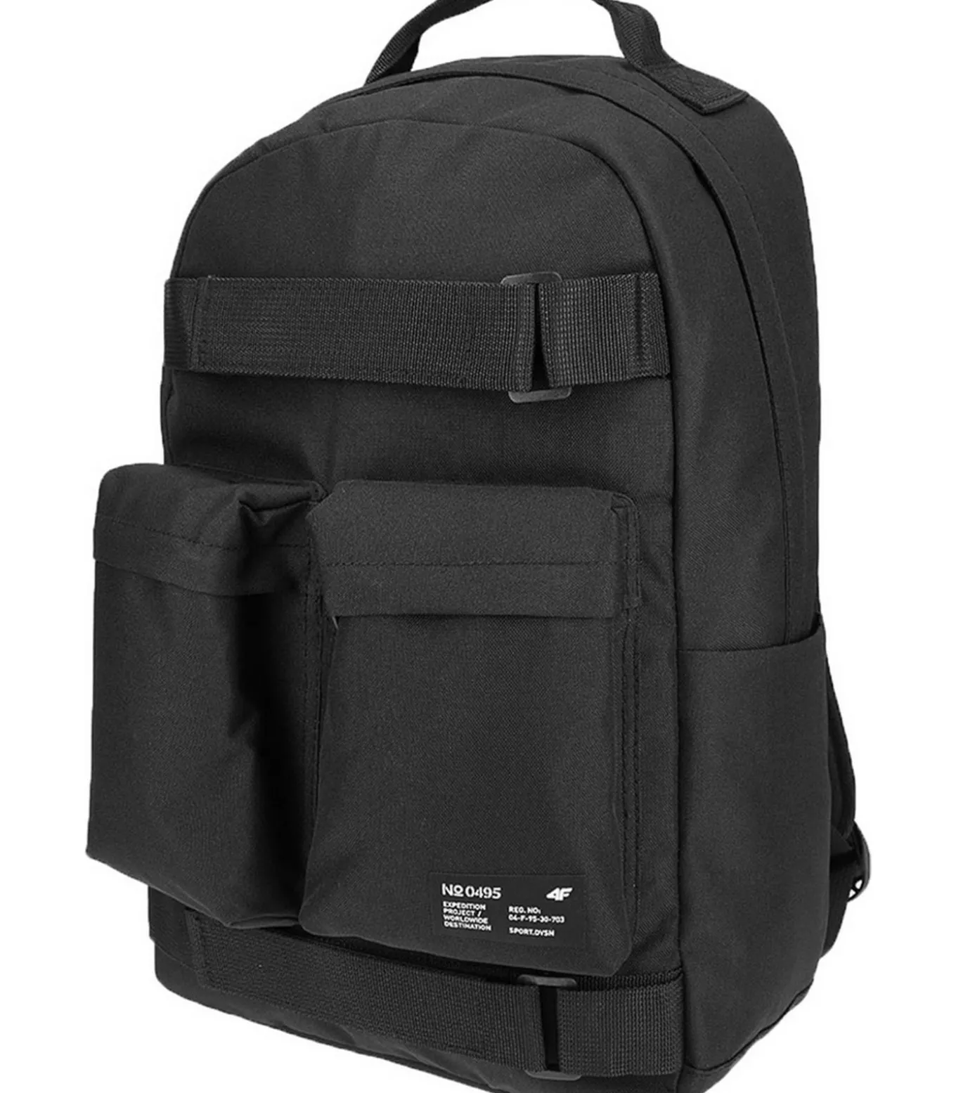 Rugzak model 4F, 4FAW23ABACF183 in zwart biedt een ideale oplossing voor wie op zoek is naar een stevige en functionele rugzak met een capaciteit van 17 liter. Deze rugzak is gemaakt van 100% polyester zowel voor de buitenste materialen als voor de lining. Het heeft een hoogte van 44 centimeter, een breedte van 29,5 centimeter en een diepte van 14,5 centimeter. De rugzak beschikt over twee zijzakken, twee voorzakken, een rits en een binnenzak. Het hoofdcompartiment is verdeeld in verschillende compartimenten om het organiseren van je dingen efficiënt te maken. De rugzak heeft een bevestiging met tweewegrits, verstelbare schouderriem, handgreep en klittenband. Met deze rugzak hebben jij een stevige en praktische begeleider bij jou op elke reis.