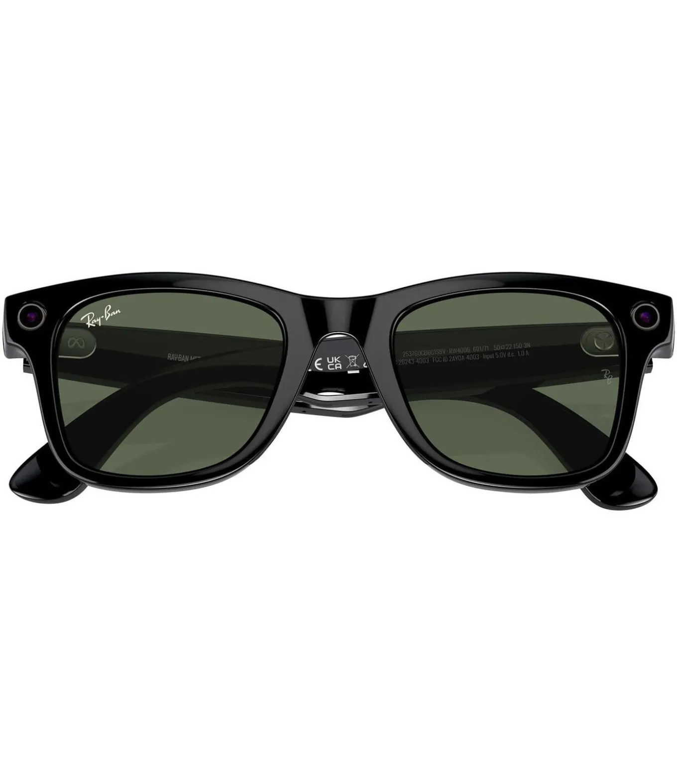 De Ray–Ban Meta Wayfarer–bril in glanzend zwart/G15 groen herdefinieert moderne brillen met ingebouwde slimme technologie. Deze stijlvolle monturen zijn voorzien van heldere lenzen met een blauw–violet lichtfilter, waardoor de belasting van schermen wordt verminderd en het klassieke Wayfarer–silhouet behouden blijft. Uitgerust met META AI, een 12 MP–camera, een vijf–microfoonsysteem en open–ear speakers, bieden deze brillen naadloze handsfree interactie, heldere audio en beelden van hoge kwaliteit. Een draagbare oplaadcase zorgt voor gemak, waardoor deze Ray–Ban smart–bril de ultieme mix is van mode en technologie. Maat: Lenshoogte: 40,6 mm, Lensbreedte: 50–22 mm, Lengte pootjes: 150 mm.