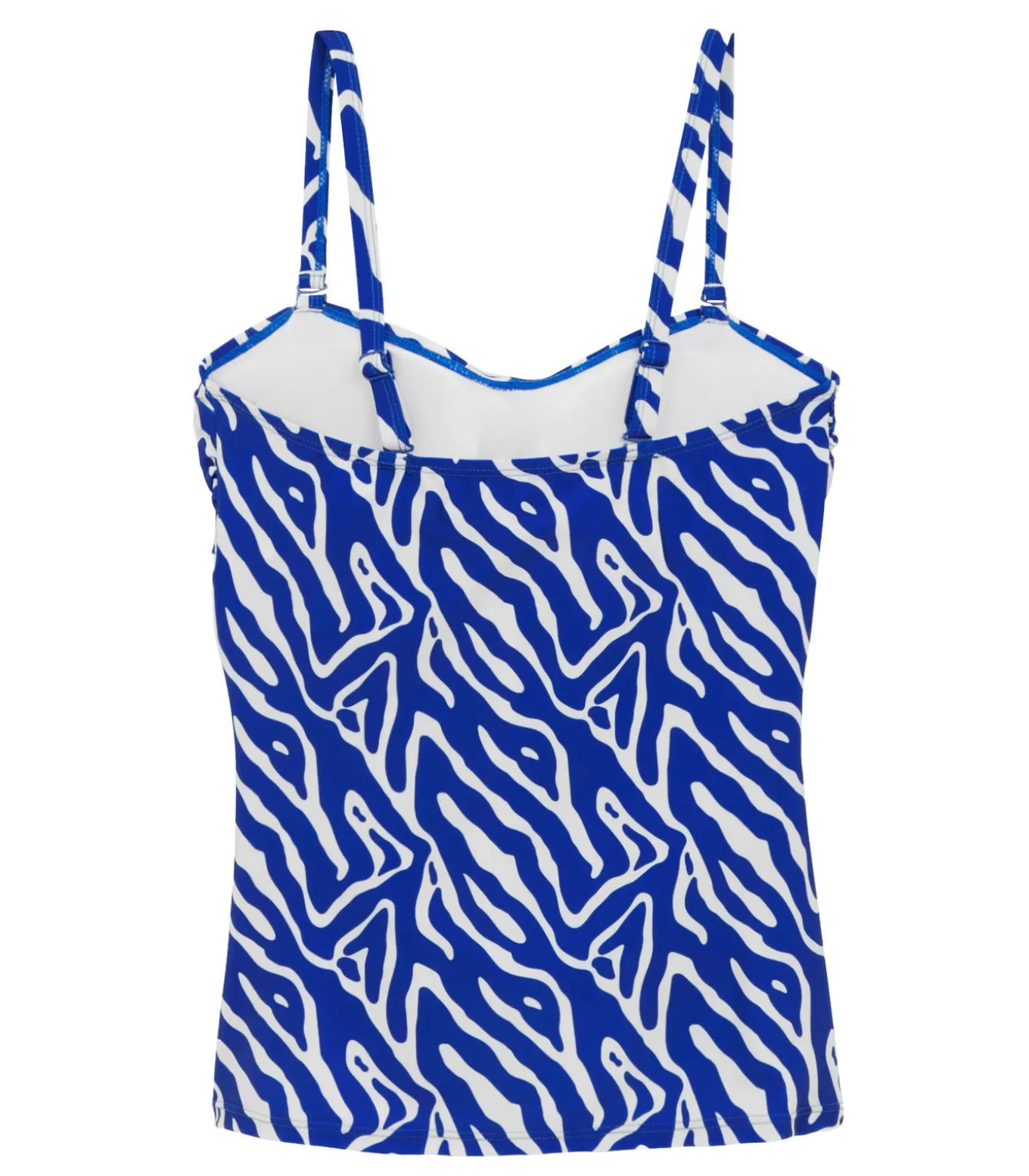 Regatta’s ACEANA III–blauw topje is gemaakt van 85% gerecycleerd polyester en 15% elastaan. Het ontwerp van dit zacht, stijlvolle blusje is abstract, bedrukt met een all over print. Het gewicht is 200gsm, waardoor het goed afstaat en niet te zwaar voelt. De achterkant kan worden vastgemaakt, terwijl de hals in liefje vorm is. Het blusje heeft een verschuifbare band, zonder gecorduurde cups, rembare knopen, en een buikbandje. De stof heeft duurzame, stretch technologie. Het topje wordt gemaakt van hergebruikt materiaal. Opmerking: deze blouse komt niet met korte broek. Het topje beschikt over UPF 50+ zonnescherming.