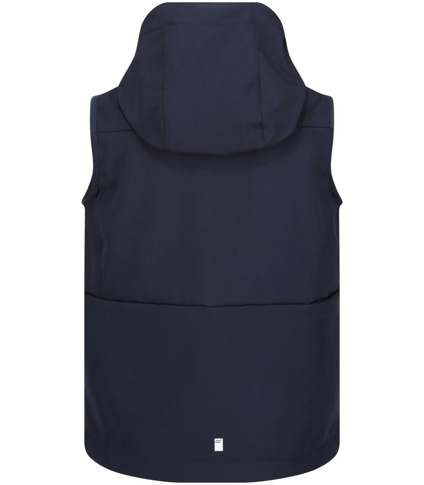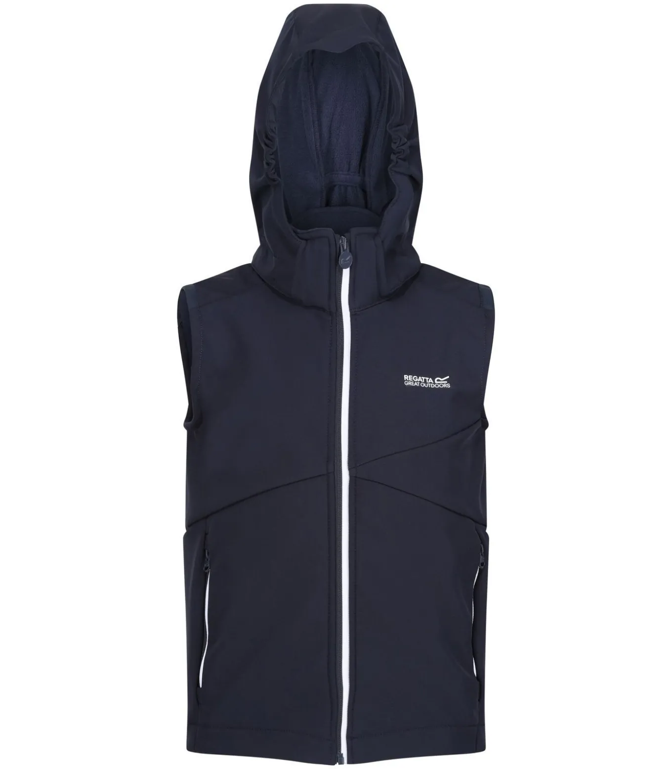 Deze kinderbodywarmer van Regatta heeft een softshell stof met stretch voor comfort. Het effen logo–ontwerp zorgt voor zichtbaarheid met behoud van eenvoud. De ademende en lichtgewicht stof heeft een DWR–afwerking om water af te voeren en wind en weer te weerstaan. De warme achterkant en ventilatie helpen de lichaamstemperatuur op peil te houden. Reflecterende boorden en een stretchboord rond de armsgaten verbeteren de pasvorm en het comfort. De meegroeibare capuchon heeft een elastische rand en kan indien nodig worden afgeritst. Twee zijzakken met rits bieden opbergruimte. Een rits over de hele lengte zorgt voor ventilatie en temperatuurregeling. De verstelbare zoom met schokkoord zorgt voor een goede pasvorm. Dit artikel is gemaakt van gerecycled materiaal om duurzaamheid te ondersteunen.