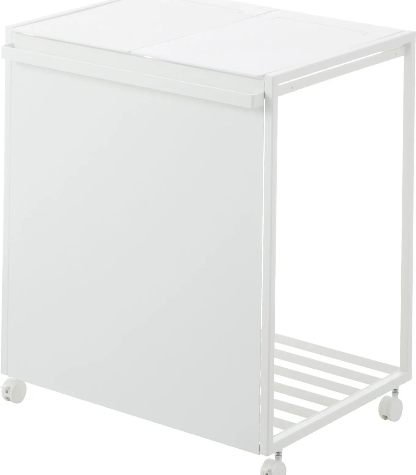 Deze prullenbak van Yamazaki heeft twee compartimenten waarin je boodschappen– of vuilniszakken kunt hangen. Dankzij de praktische wieltjes en handgreep verplaats je de prullenbak moeiteloos naar iedere gewenste plek. De deksel biedt niet alleen een discrete afsluiting, maar is ook gemakkelijk te openen en blijft dankzij een siliconenstopper op zijn plek staan, handig tijdens het vervangen van de zakken. Daarnaast biedt de onderste plank extra opbergruimte voor je voorraad vuilniszakken of andere benodigdheden.
