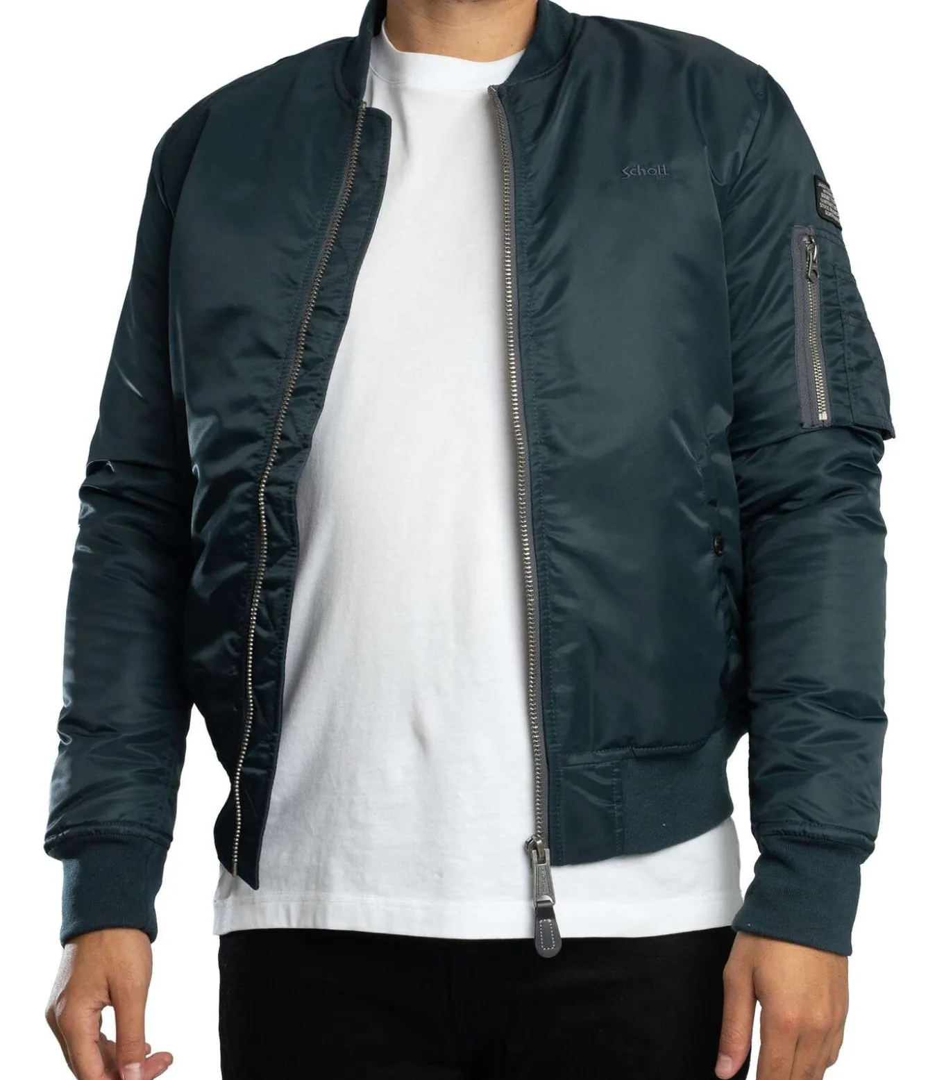 Schott introduceert het Airforcers Bomberjack in marineblauw, een veelzijdige must–have voor buitenkleding, geïnspireerd op de klassieke luchtvaartstijl. Merkknopen en borduursel op de borst tonen Schotts aandacht voor kenmerkende details, terwijl de zakken met knoopjes zorgen voor gemakkelijke opbergmogelijkheden. De elastische manchetten en zoom van het jack zorgen voor een nauwsluitende pasvorm en houden de kou buiten. Een ritsvak op de mouw biedt extra functionaliteit, aangevuld met een binnenzak met knoop. De Schott Airforcers Bomberjack, die erfgoed en moderniteit perfect combineert, belichaamt het vakmanschap en de robuuste stijl van het merk.