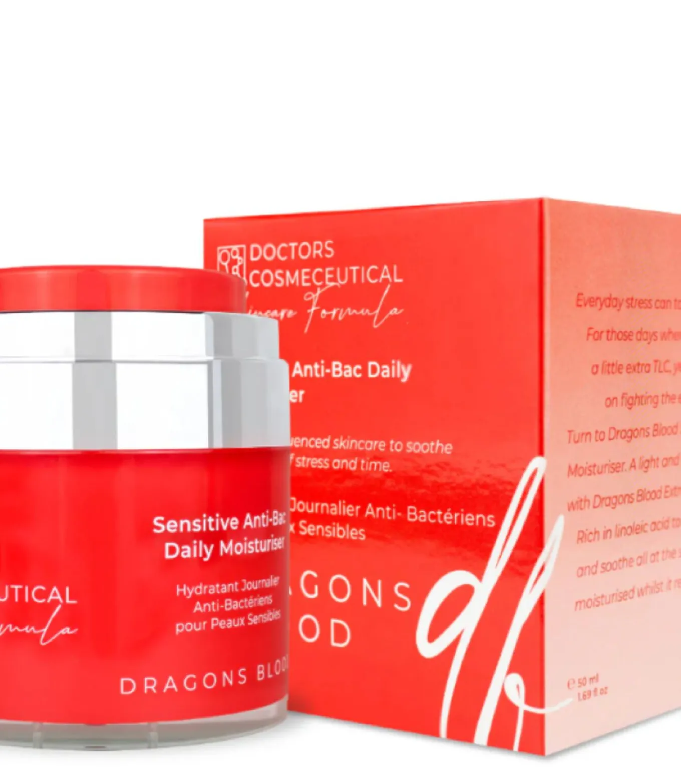 Dragons Blood Sensitive Anti–Bacteriële DagcrèmeVoor die dagen waarop je huid extra zorg nodig heeft én je de tekenen van huidveroudering wilt aanpakken, is deze lichte, romige hydraterende crème perfect. Verrijkt met linolzuur, helpt ze de huid te versterken, te kalmeren en te herstellen – terwijl ze langdurige hydratatie biedt.Belangrijkste voordelen:✔️ Krachtige antioxidant – tot 20x effectiever dan vitamine E, vergelijkbaar met vitamine C✔️ Helpt de huid essentiële hydratatie vast te houden✔️ Kalmeert gestreste, droge en gedehydrateerde huid✔️ Ondersteunt huidherstel en verjongingVoor wie?Aanbevolen voor leeftijden 20 tot 60 jaar – vanaf 20 daalt het collageenniveau, dus een gerichte verzorging is essentieel om een stevige, jeugdige huid te behouden.Geschikt voor alle huidtypes.Actieve ingrediënten:Sang de Dragon (Croton Lechleri–extract): Een krachtige anti–age antioxidant, die helpt bij het vertragen van zichtbare veroudering.Zonnebloemzaadolie: Rijk aan linolzuur – versterkt, repulpeert en herstelt de huidbarrière.Propanediol: Werkt als een natuurlijke bevochtiger die de huid zacht, gehydrateerd en stralend laat aanvoelen.🌿 Een herstellende en antibacteriële verzorging voor een stralende en beschermde huid!