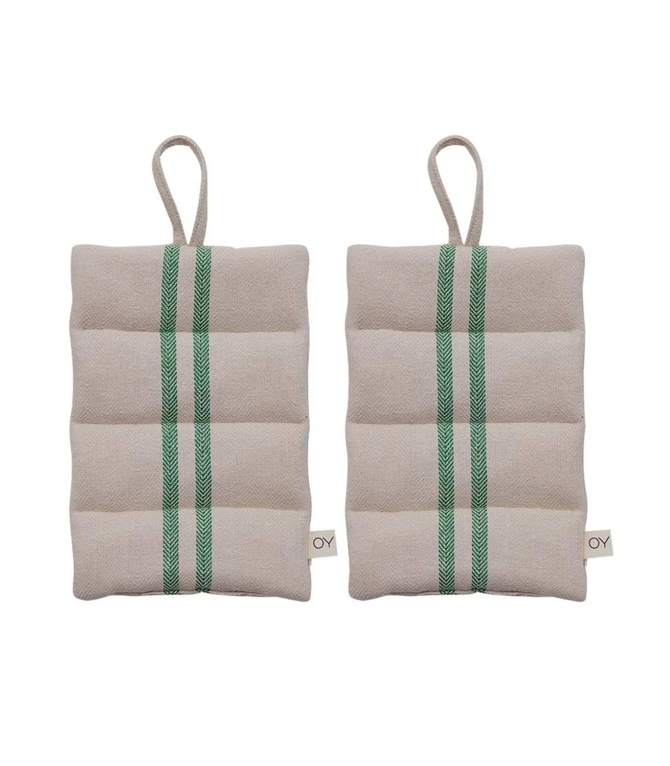 Koken is een belangrijk onderdeel van het dagelijks leven, dus waarom zou je het niet leuk en stijlvol maken? De Linu pannenlap is een stijlvolle combinatie van vorm en functie. Hij is gemaakt van biologisch katoen met een Oeko–Tex polyester vulling, heeft een visgraatmotief en een eenvoudig ontwerp met een variatie van verschillende strepen.