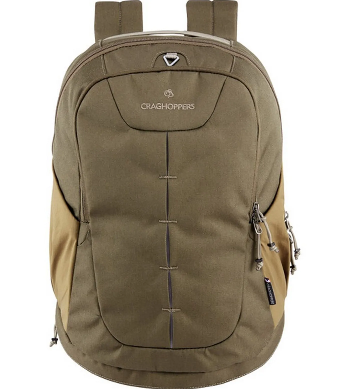 Craghoppers ANTI–THEFT groene rugzak is gemaakt van EVA, polyamide, polyester en PU–verf. Het denier bedraagt 900D. De lengte van de rugzak is 50 cm, de breedte is 27 cm en de diepte is 19 cm. De rugzak heeft technologieën zoals Anti–Odour en EcoShield om je kleding goed af te zuiveren en de wereld beter te beschermen. Het ontwerp van de rugzak bevat een logo. De rugzak kan worden vastgemaakt met klips of riitssluitingen. De schouderriem is verstelbaar en heeft anti–diefstal functies, een café–band, draaggreep, hoofdtelfoonpoorten en kabelopberglusje. Verder is de rugzak waterafstotend, perforaat, met reflecterende details en een schouderriem van geweven band. De rugzak heeft een bagagehandvat op wieltjes. Het rugzak heeft compartimenten zoals 1 hoofdcompartiment en 1 compartment met riit. De rugzak telt 1 RFID Blocking Pocket, 1 Front Pocket, 1 zip–pocket, 1 mesh pocket, en 2 zijzakken. Het wordt gemaakt van hergebruikt materiaal. De ruimte in de rugzak is 25 liter en het kan een laptop met een schermgrootte van 16 inch vervoeren. De rugzak is snijbestendig.