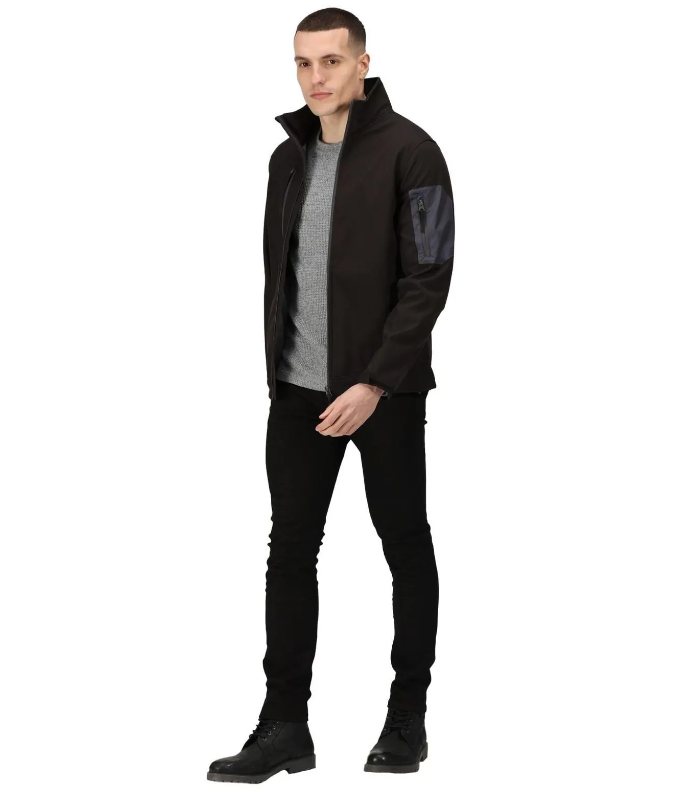 Regatta ARCOLA – Zwarte jasje is gemaakt van 96% polyester en 4% elastane. Het heeft een drielaags softshell weefsel, dat zowel ademend, duurzaam, waterdicht, windbestendig en XPT–technologie bevat. Het ontwerp is eenvoudig en de jasje bestaat uit 300gsm. De manchetten zijn verstelbaar en hebben een hoog nek. Er is ook binnenritsbeveiliging en het heeft lange mouwen. Het is geschikt voor reguliere gebruik en er zijn diverse zakken zoals één borstzak, twee zijzakken en een rit. De volledige rijtssluiting voorkomt verplaatsen en er is een verstelbare zoom met schokkoord. Het product wordt geleverd in een polybag. De grootten die beschikbaar zijn zijn XL (49 inch), XXL (53 inch) en 3XL (56 inch).