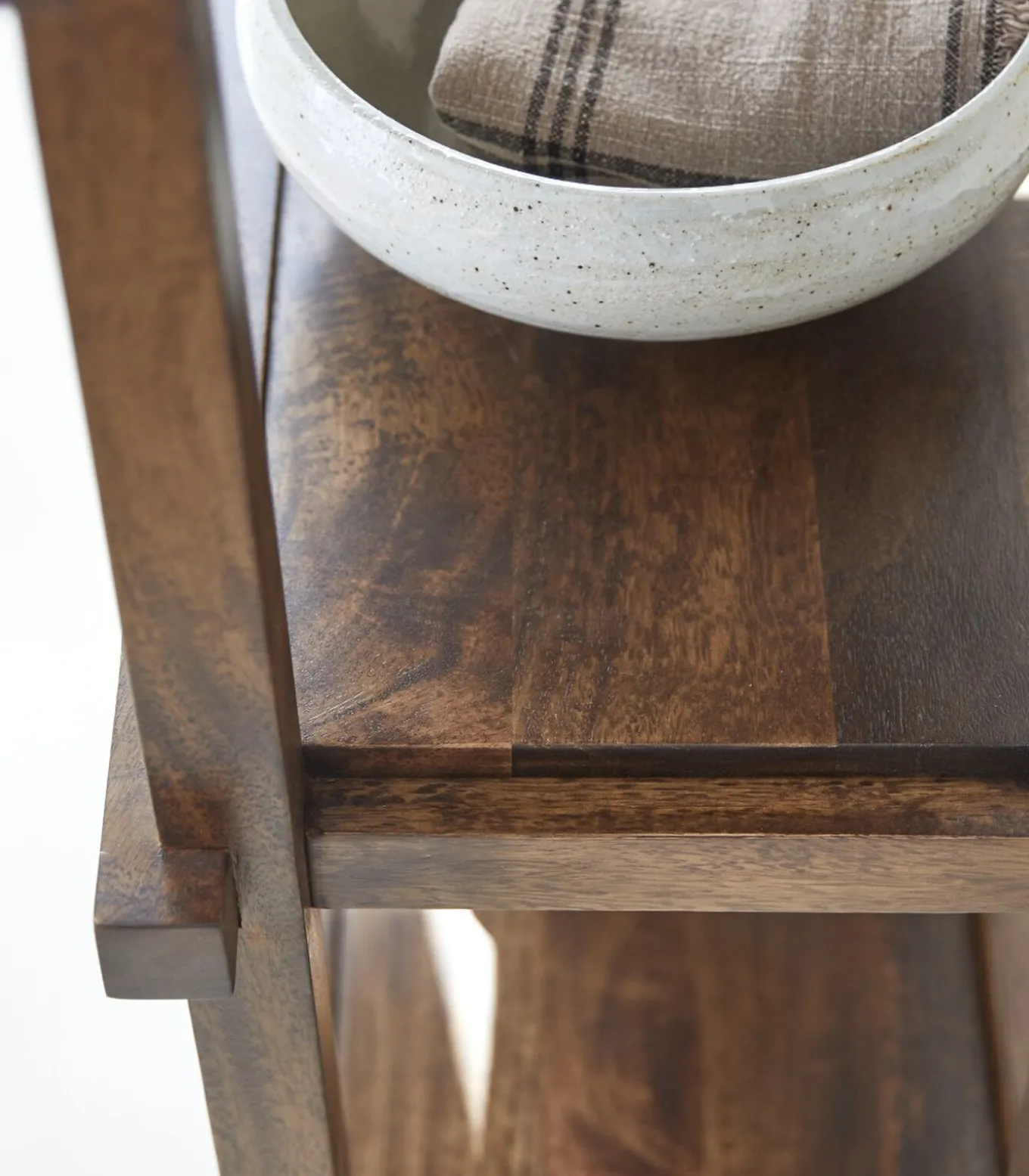 De Arko boekenkast in massief mango bestaat ook als lage boekenkast.