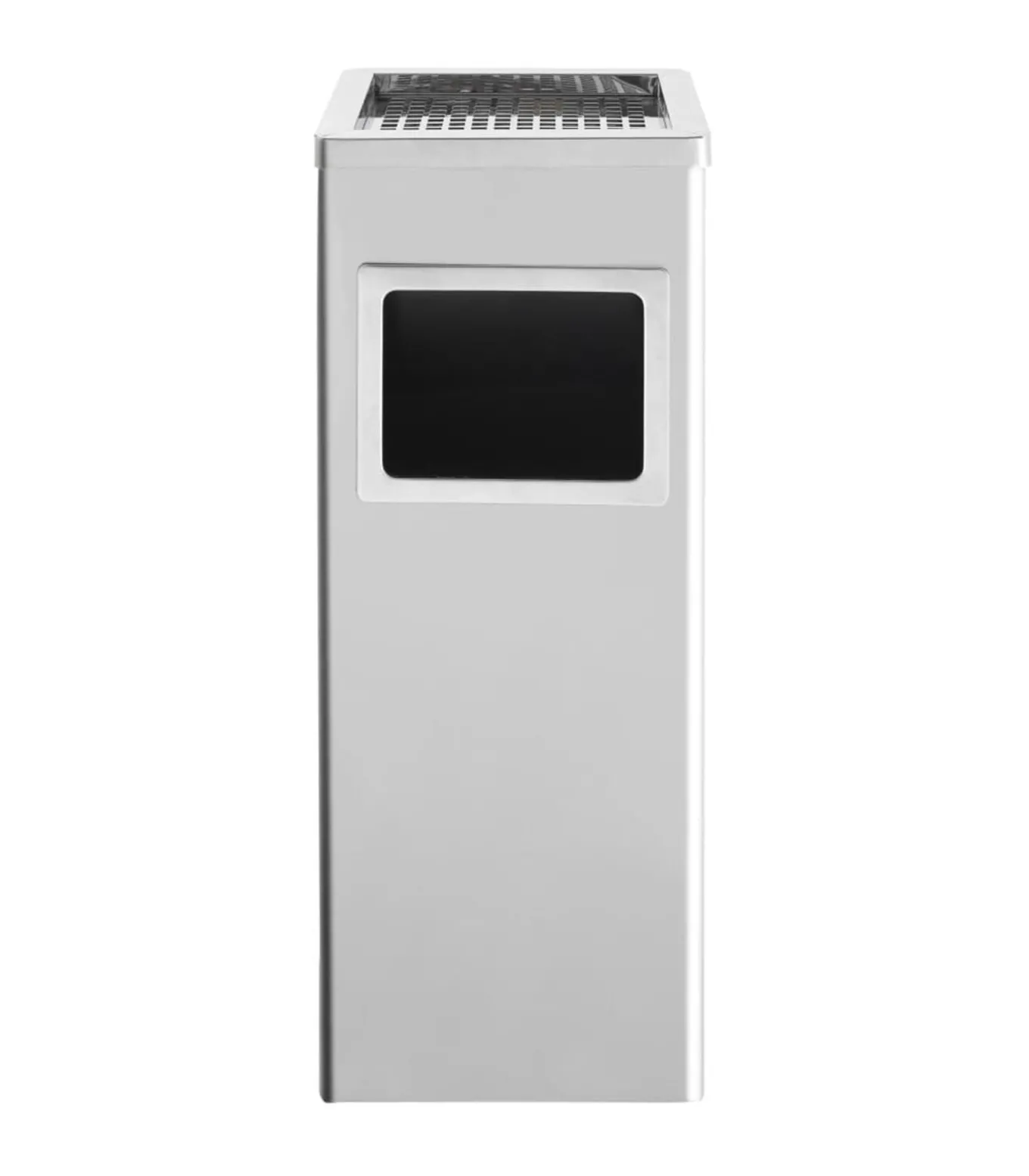 Onze hoogwaardige asbak/prullenbak wordt gekenmerkt door de elegantie van roestvrij staal en een asbakontwerp. Hij heeft niet alleen een geavanceerd ontwerp, maar is ook zeer functioneel. Onze afvalcontainer heeft een grote afvalbak met daarboven een asbak. Hij kan zowel binnen als buiten worden gebruikt en is dus ideaal voor hotels, restaurants, kantoren, enz.