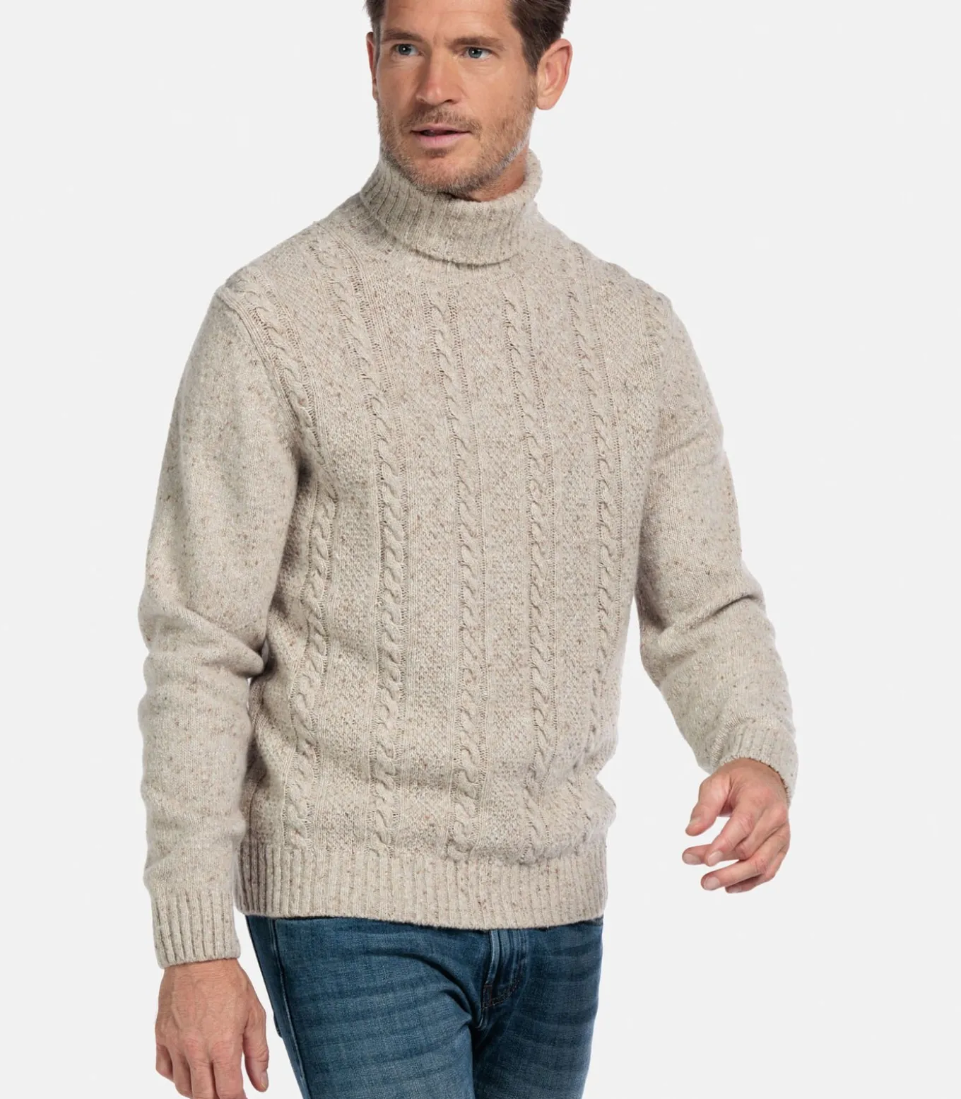 Deze regular fit coltrui combineert een tijdloos kabelpatroon met een moderne, gemeleerde look. Gemaakt van een warme wolmix die zacht aanvoelt en perfect is voor koude dagen. Stijlvol te dragen op een jeans of chino voor een comfortabele winteroutfit. Artikelnummer 528551–817