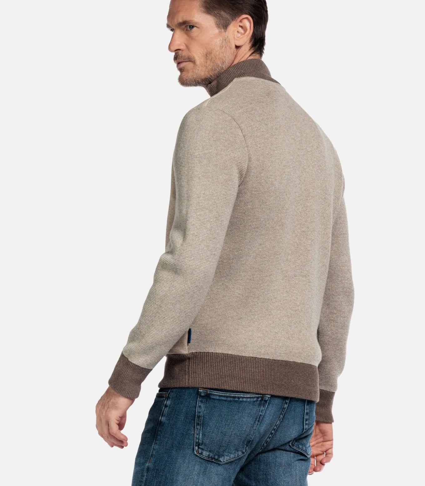 Dit vest combineert een flanel voorpand met gebreide mouwen en een achterpand van katoenmix in een contrasterende kleur. De ribgebreide boorden bij kraag, mouwen en zoom versterken het kleurcontrast en geven het vest een moderne, sportieve uitstraling. Het model is uitgevoerd in een regular fit met opstaande kraag, ritssluiting en zakken in de zijnaden. De mix van materialen zorgt voor comfort, warmte en een luxe, casual look. Artikelnummer 522093–815
