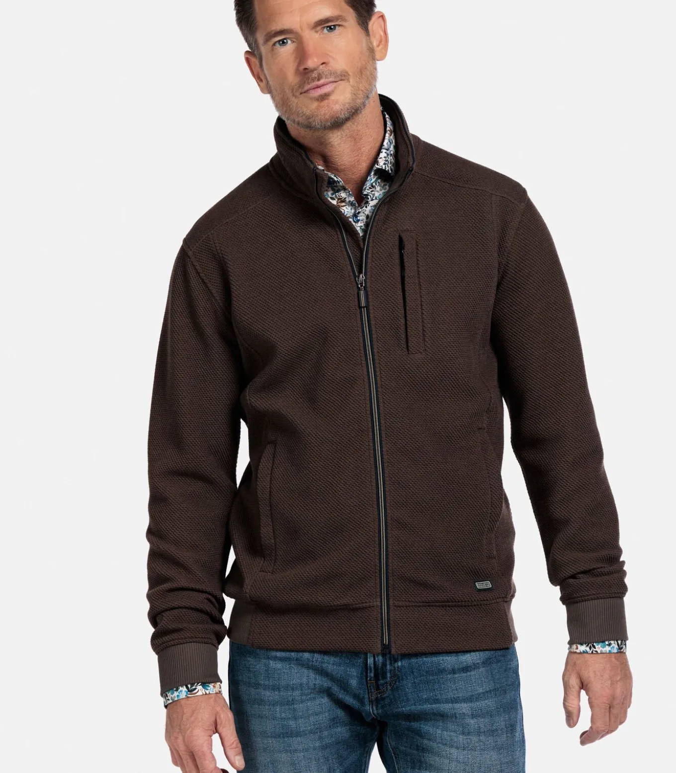 Dit vest heeft een subtiel structuurpatroon en een sportieve uitstraling. Het model is uitgevoerd in een regular fit met ritssluiting, borstzak met rits en zakken met rits in de zijnaden. Ribgebreide boorden bij mouwen en zoom zorgen voor een comfortabele pasvorm. Artikelnummer 522230–87