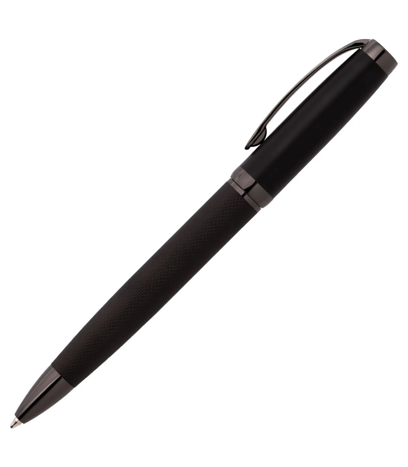 Van een zachte matzwarte gelakte dop tot een matzwarte diamantgeslepen gegraveerde body en versierd met glanzende gunmetal garnituren, de Myth balpen is vol contrast en geeft het een luxueuze en moderne uitstraling. Dimensions: DIA.13/H.141 mm, Material: Brass,Lacquer,Gun plating