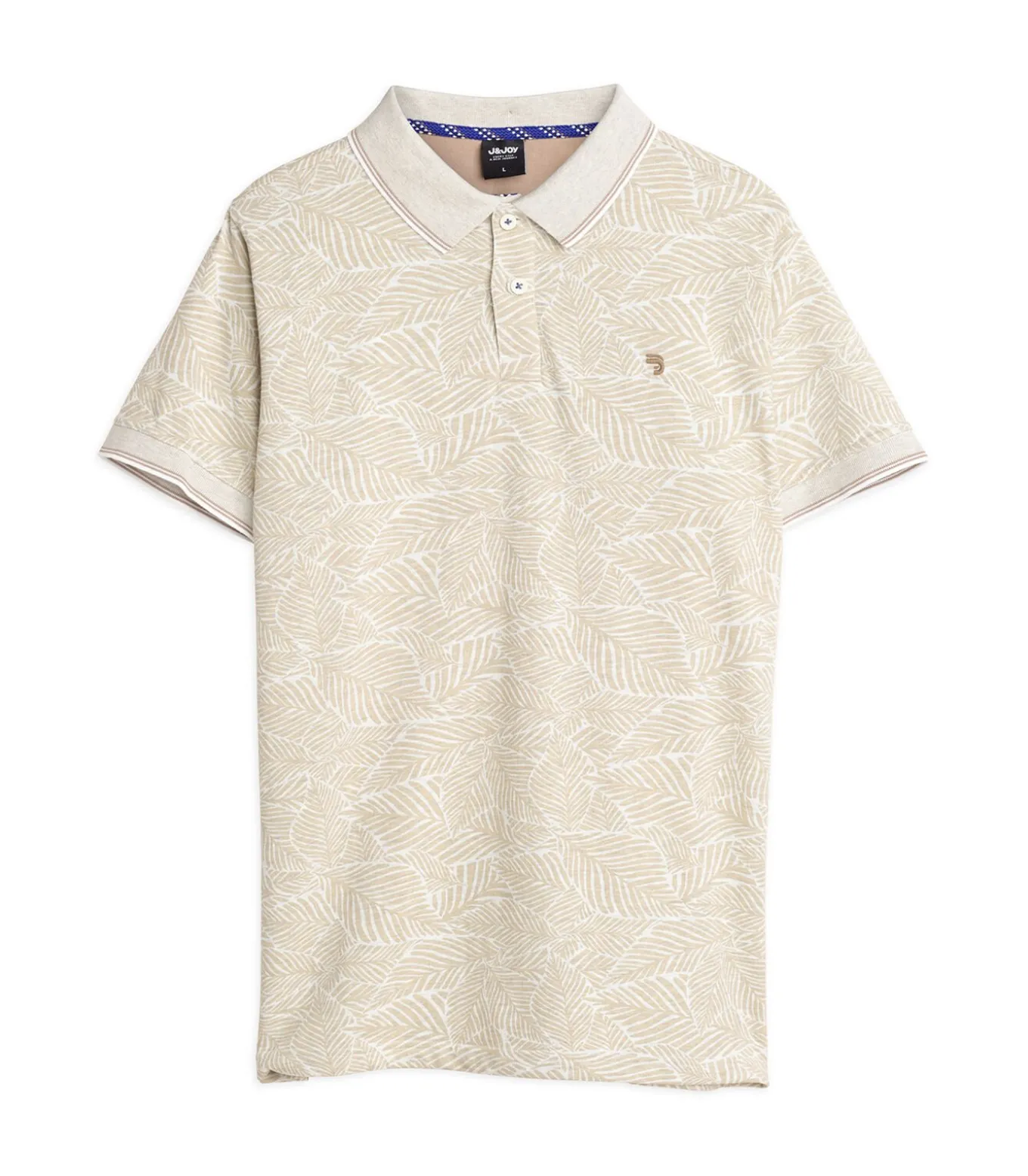 Laat je stijl zien met dit beige poloshirt voor heren, geïnspireerd op de majestueuze Andes. Gemaakt van een mix van 68% katoen en 32% polyester, biedt dit poloshirt superieur comfort en een flatterende regular fit. De opvallende bladerprint voegt een vleugje natuur toe aan je outfit, terwijl de geribbelde polokraag met contrasterende biezen en gestileerde ribbels aan de binnenkant een verfijnde touch geven. Details zoals de sluiting met twee knopen, het geborduurde J&JOY–logo op de borst, korte mouwen en geribbelde manchetten met contrasterende biezen maken dit poloshirt een stijlvolle en veelzijdige keuze voor je garderobe. Bestel nu en voeg een onderscheidend item toe aan je kledingcollectie.