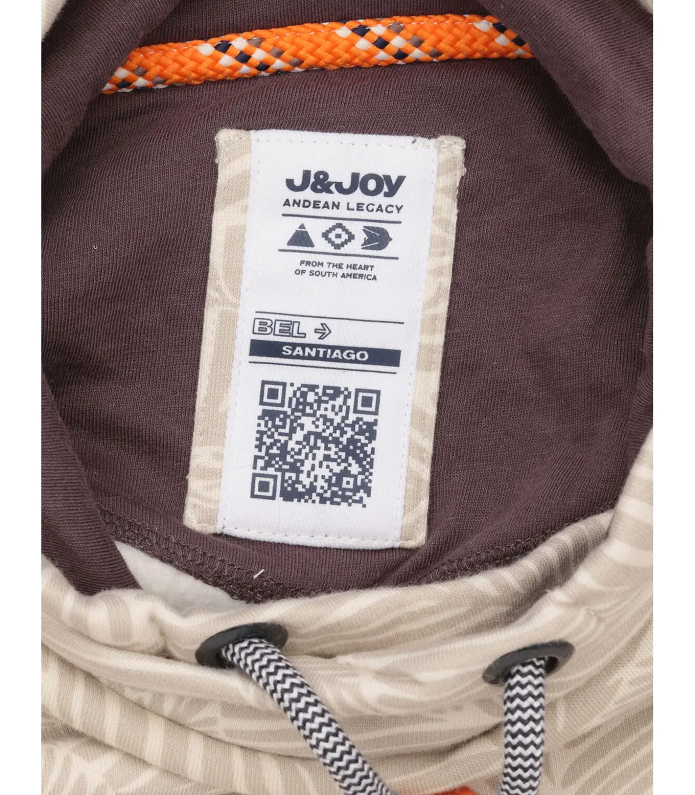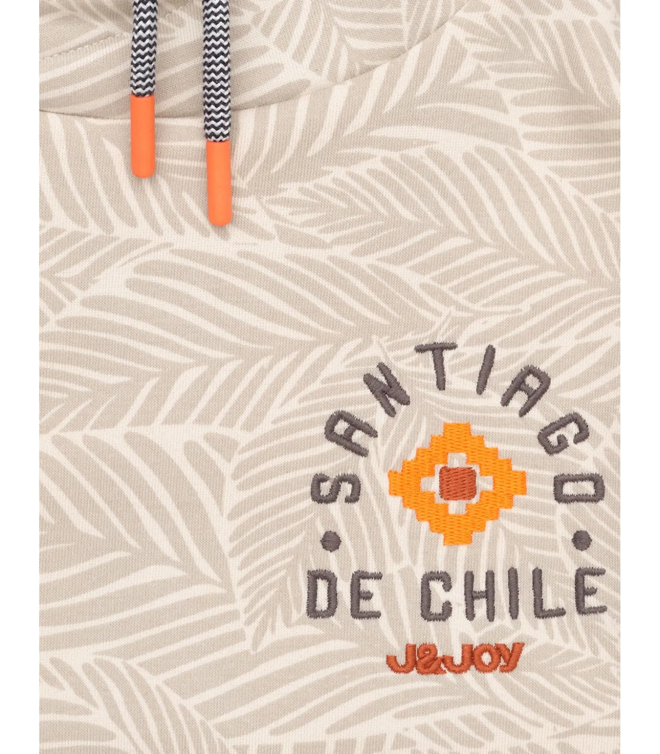 Geef je zoon een urban en trendy stijl met deze beige sweater met een plantenmotief, geïnspireerd op de bruisende stad Santiago. Gemaakt van een mix van 60% katoen en 40% polyester, biedt deze sweater comfort en duurzaamheid. De rechte snit, opstaande kraag met contrasterend trekkoord en elastische geribbelde randen geven een moderne touch. De lange mouwen, kangoeroezak en plantenprint geven deze driekleurige sweater een casual touch. Tot slot getuigt het geborduurde J&JOY–logo op het hart van de authenticiteit van dit onmisbare kledingstuk voor de garderobe van je kind. Bestel nu voor een urban en stijlvolle look.