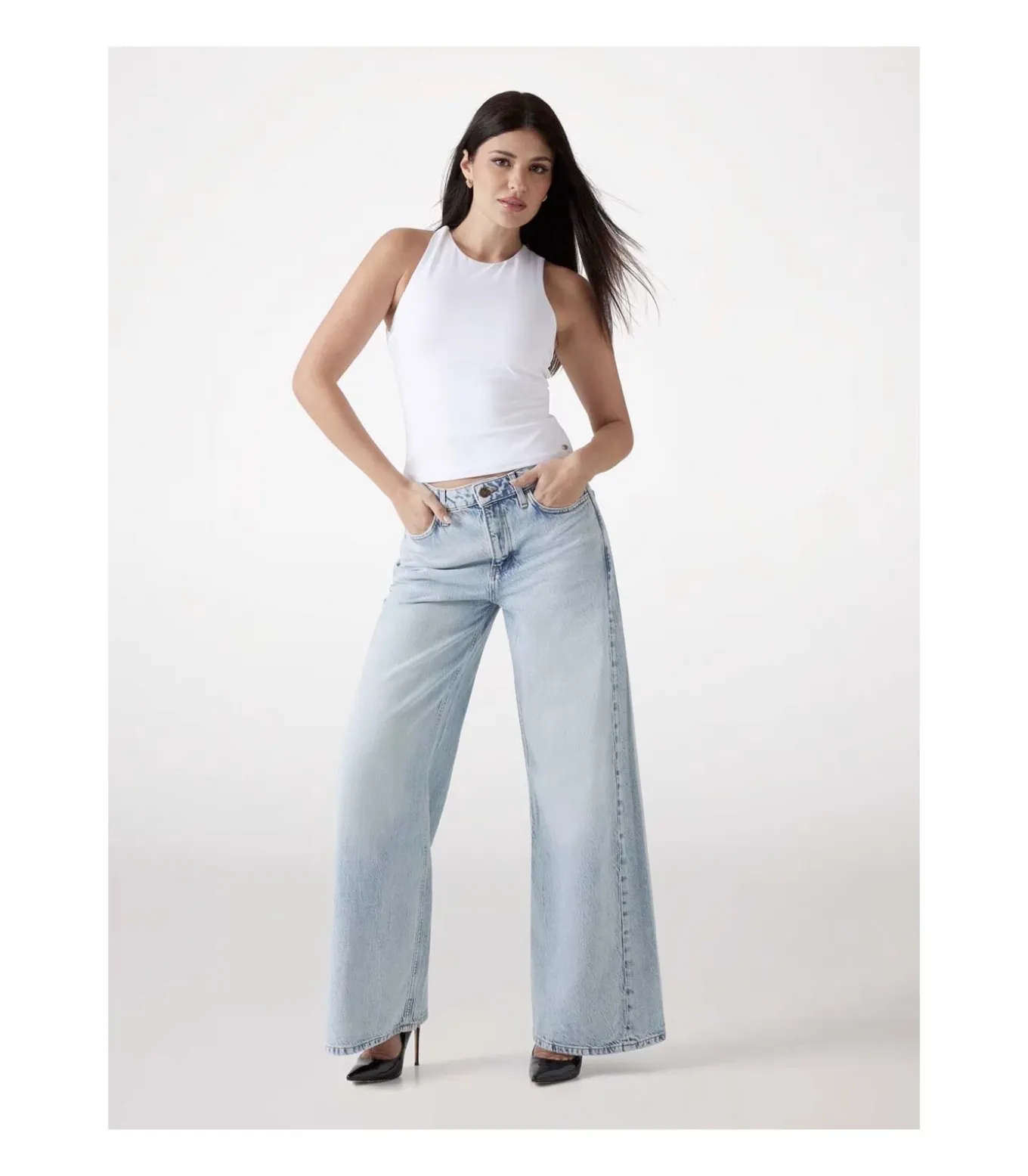 * Kleur: Jersey * Pasvorm: Relaxed * Model: Five–pocket jeans met wijde pijpen * Details: Vervaagd voor een vintage uitstraling, driehoekig logo op de achterzak * Sluiting: Knopen * Samenstelling: 58% Katoen, 42% Lyocell * Duurzaamheid: Gemaakt met TENCEL™ en REFIBRA™ cellulosevezels, afkomstig uit duurzaam beheerde bossen en gerecyclede katoenresten * Wassen: Wassen max. 30°C – Extra fijn programma; Niet chemisch reinigen * Gebruik: Perfect voor het creëren van een casual–chique look met een vintage tintje, ideaal om te combineren met strakke topjes en hakken voor een verfijnde outfit.