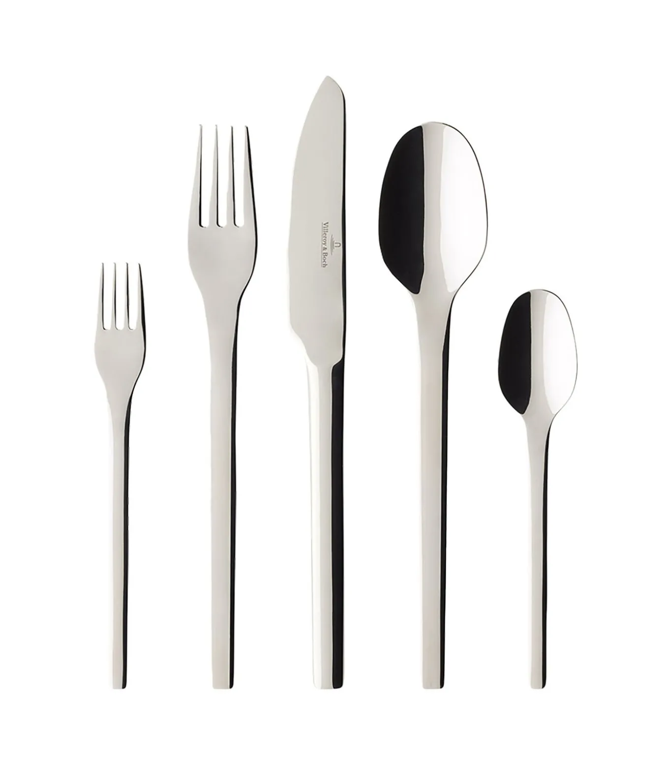 Moderne geometrie, heldere lijnen en markante grepen: het Tools tafelbestek van Villeroy & Boch. Sinds 1748 staat het bedrijf voor tafelcultuur van de allerbeste kwaliteit. Met de 30–delige set voor 6 personen bent u perfect uitgerust, van het ontbijt tot en met het avondeten. De set bestaat uit zes messen, vorken, lepels, koffielepels en gebaksvorken. Ontdek exclusief bestek–design van Villeroy & Boch. Natuurlijk geschikt voor de vaatwasser.