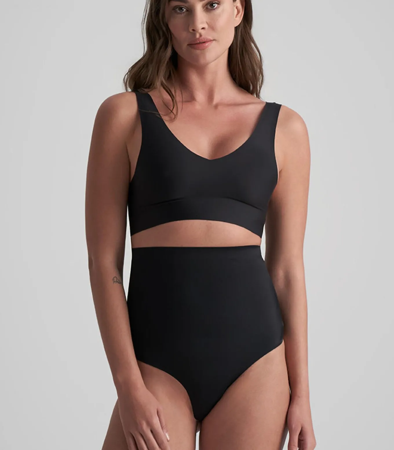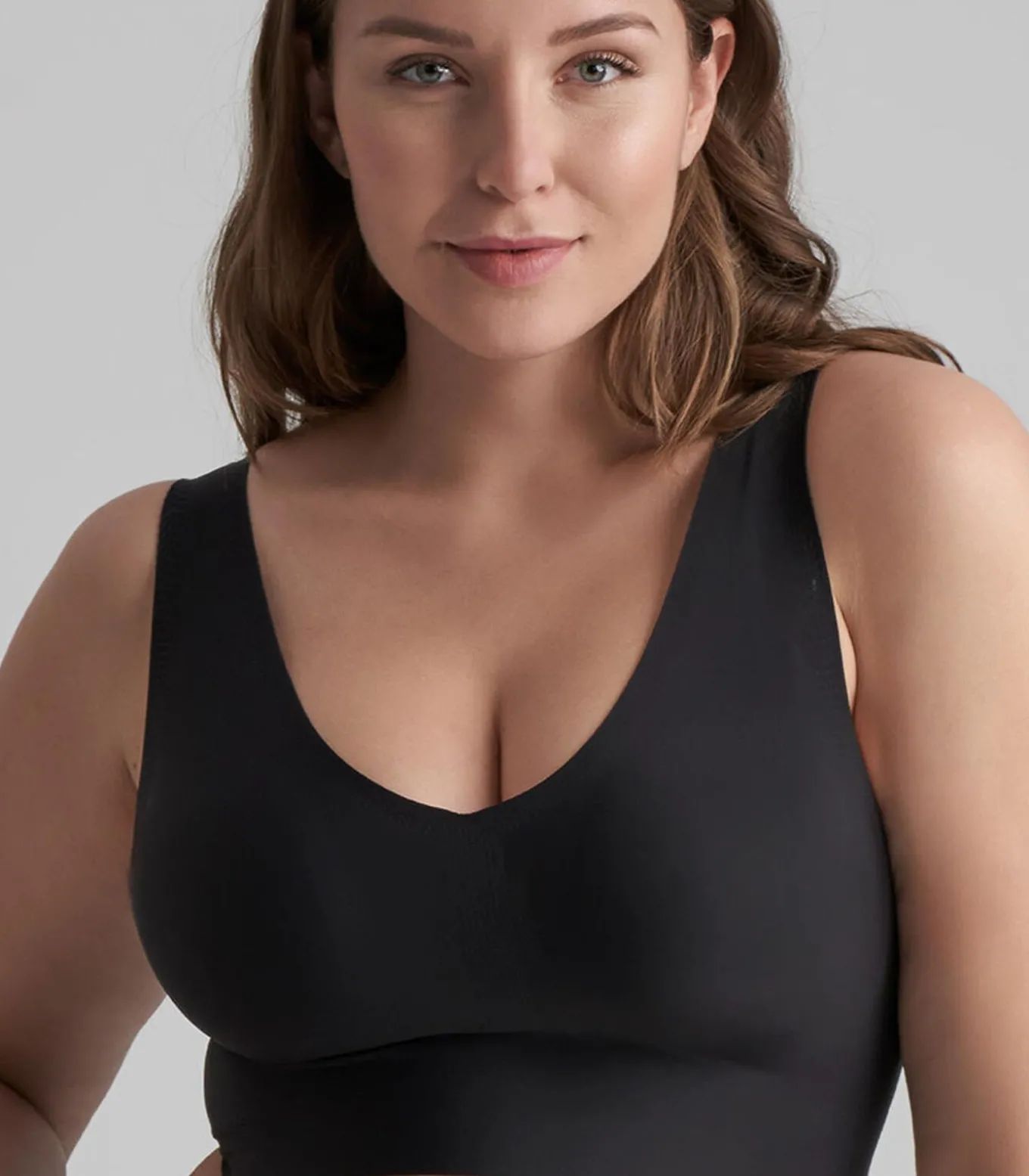 Met de Invisible–collectie lanceert BYE BRA een selectie van vormen met een lichtregeling. Ze zijn volledig onzichtbaar onder je dagelijkse kleding, waardoor ze een goede optie zijn voor vrijetijdskleding. Door de lichte en rekbare jersey microvezel voelen ze aan als een tweede huid en zijn ze bijna onzichtbaar. De Bra Top V–Neck is naadloos, onzichtbaar onder je kleding en de perfecte vervanging voor een traditionele bh.
