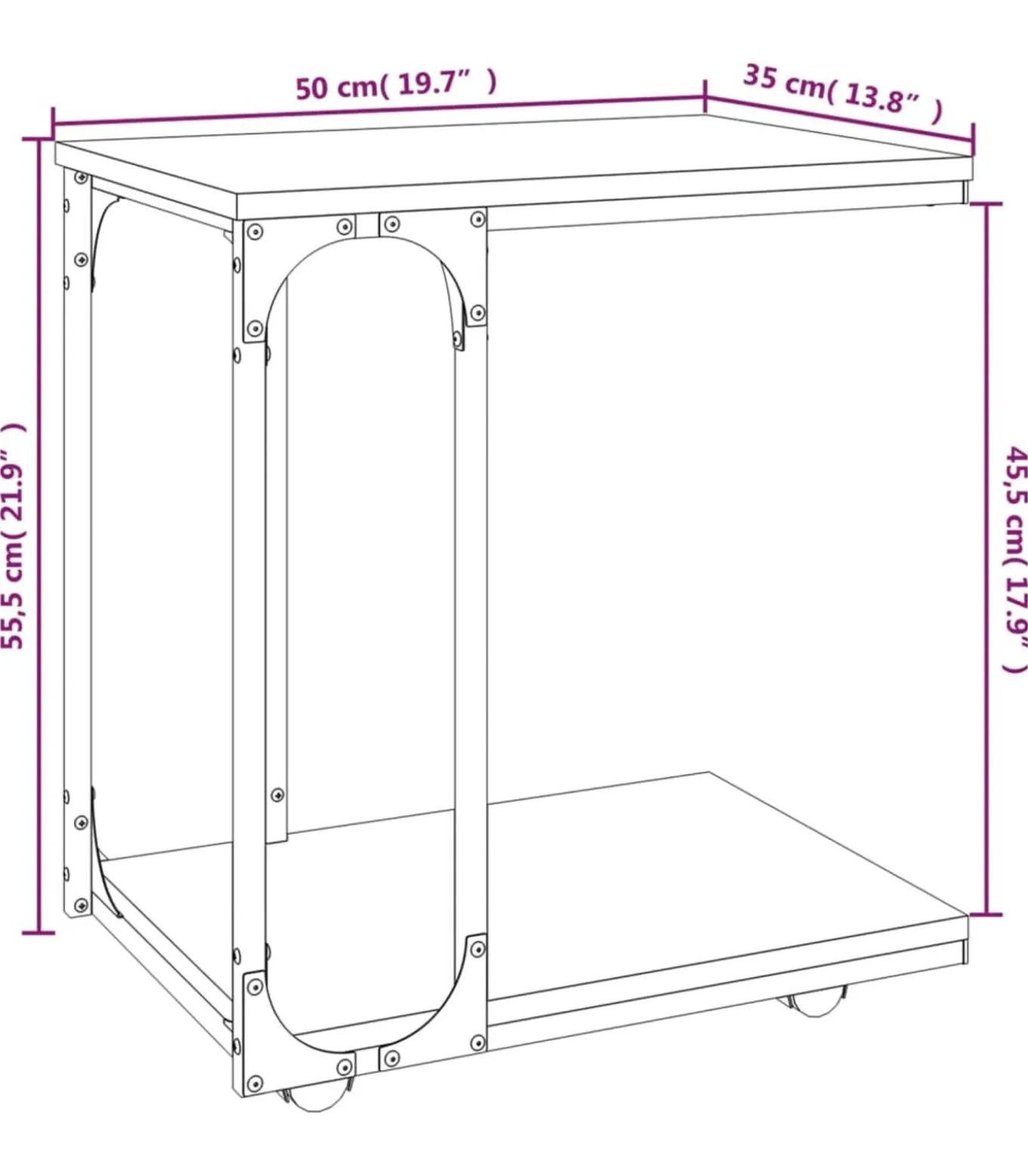 Eenvoudig te verplaatsen: de tafel kan dankzij de draaibare wielen heel eenvoudig op de gewenste plek worden neergezet. 2 van de wielen zijn vergrendelbaar, waardoor de bijzettafel op zijn plek blijft staan en hij stabieler is.