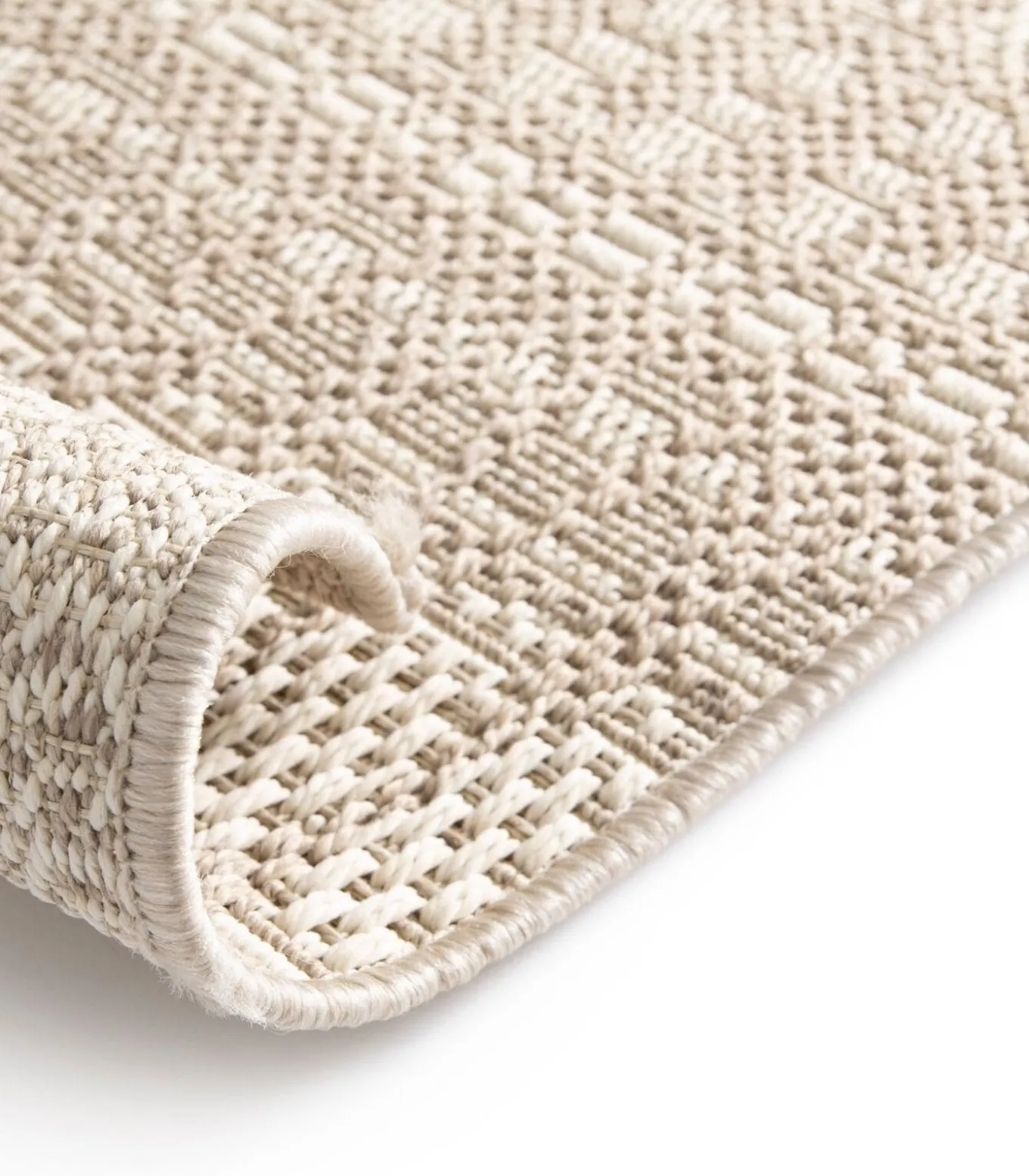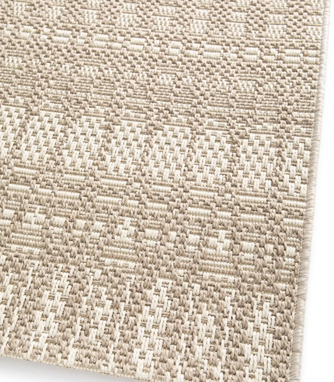Functionele en esthetische tapijten in tijdloze natuurlijke tinten. Hun weersbestendigheid maakt ze tot duurzame en innovatieve stukken, perfect voor zowel binnen– als buitenshuis gebruik. De natuurlijke sisal–uitstraling voegt karakter toe aan elke leefruimte, of het nu een terras, patio, woonkamer of keuken is.Kenmerken van het product:Tapijt geschikt voor binnen– en buitenshuis gebruikOnderhoudsvriendelijkUV–bestendig en vlekbestendigOnderhoudstips:Dankzij de UV–gestabiliseerde polypropyleen samenstelling, die schimmel– en vlekbestendig is, zijn deze tapijten uiterst gemakkelijk te onderhouden. Een eenvoudige reiniging met een waterstraal en drogen aan de lucht is voldoende om ze in perfecte staat te houden.