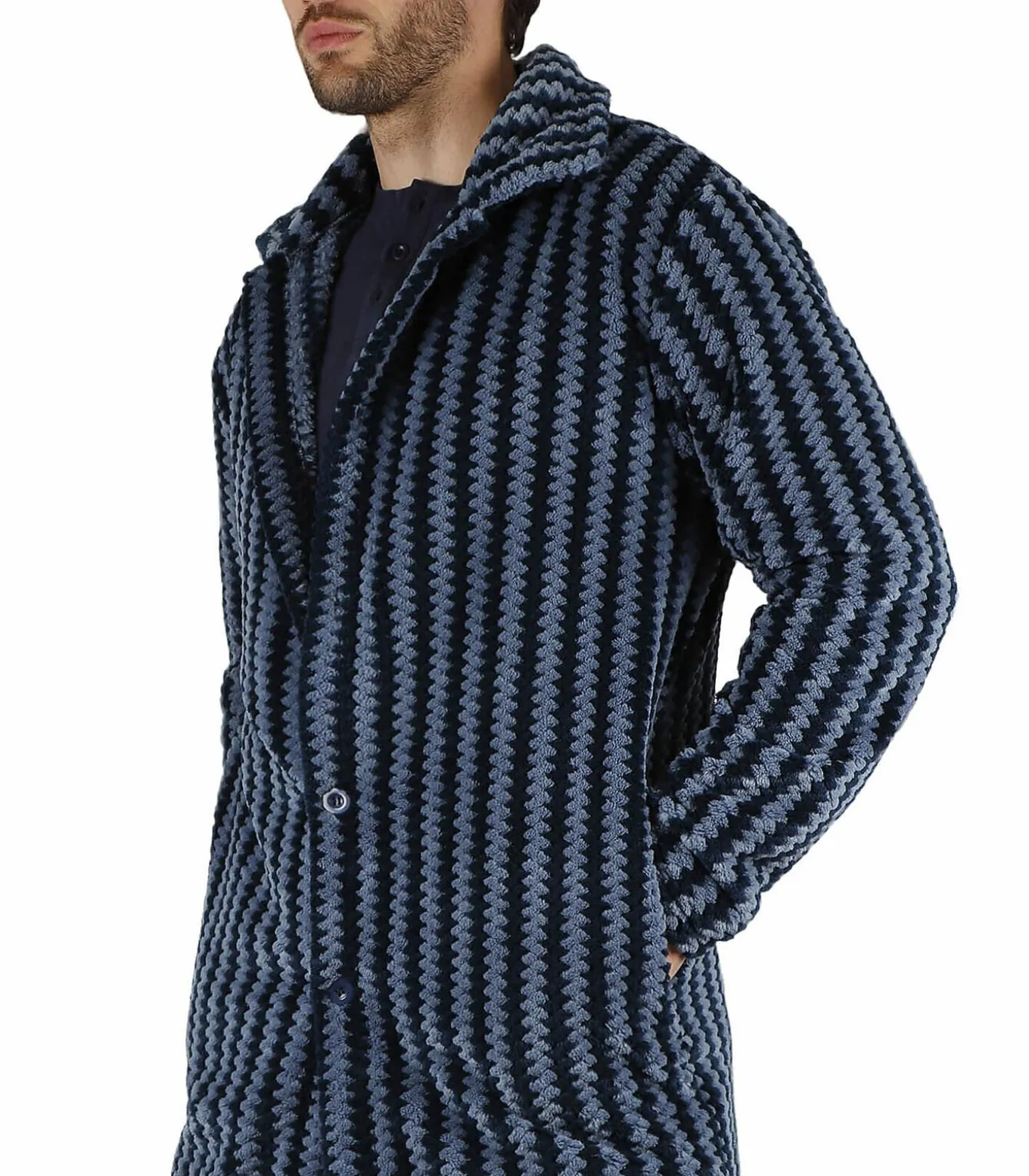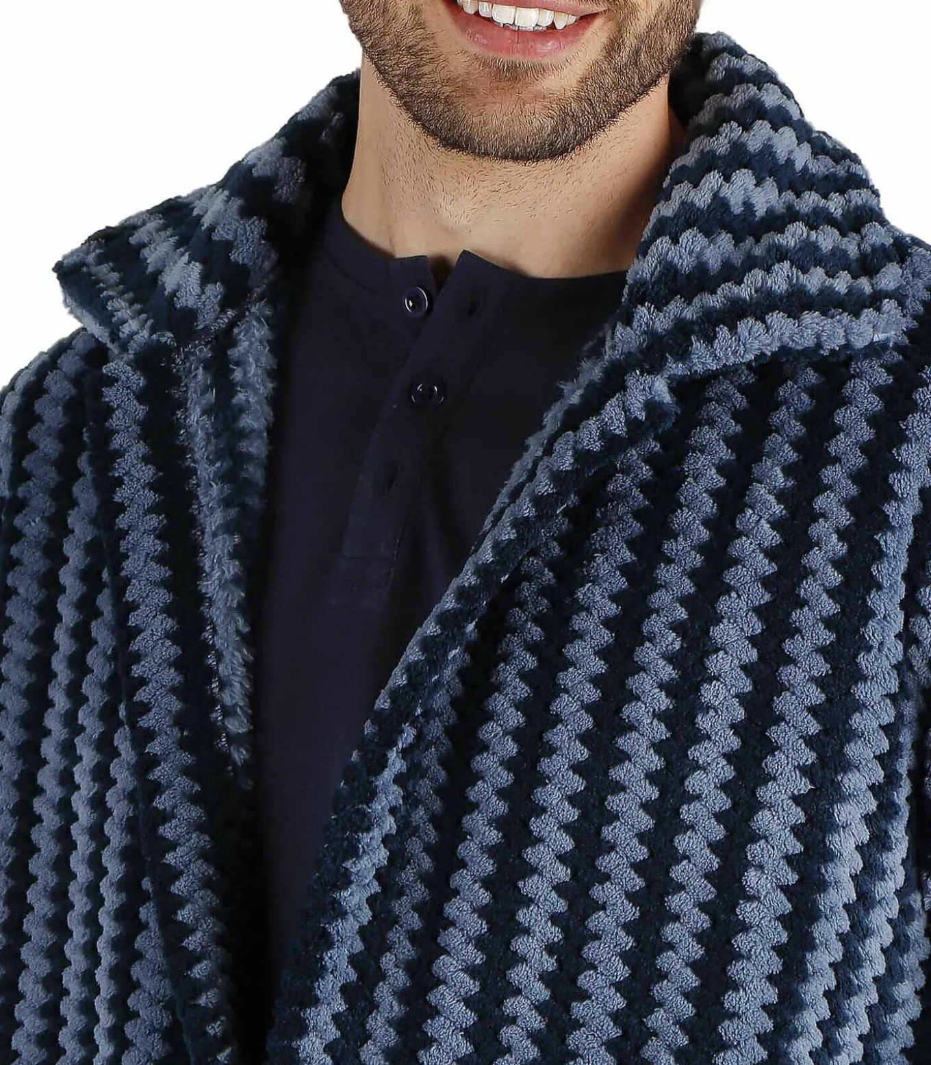 Zacht en comfortabel Corel fleece binnenjack, ideaal om te dragen in de winter op koelere avonden. Het heeft lange mouwen en een hoge kraag, steekzakken, en sluit aan de voorzijde met knopen. Het biedt u een originele stijl dankzij het zigzagpatroon. Zeer aangenaam en comfortabel om te dragen.