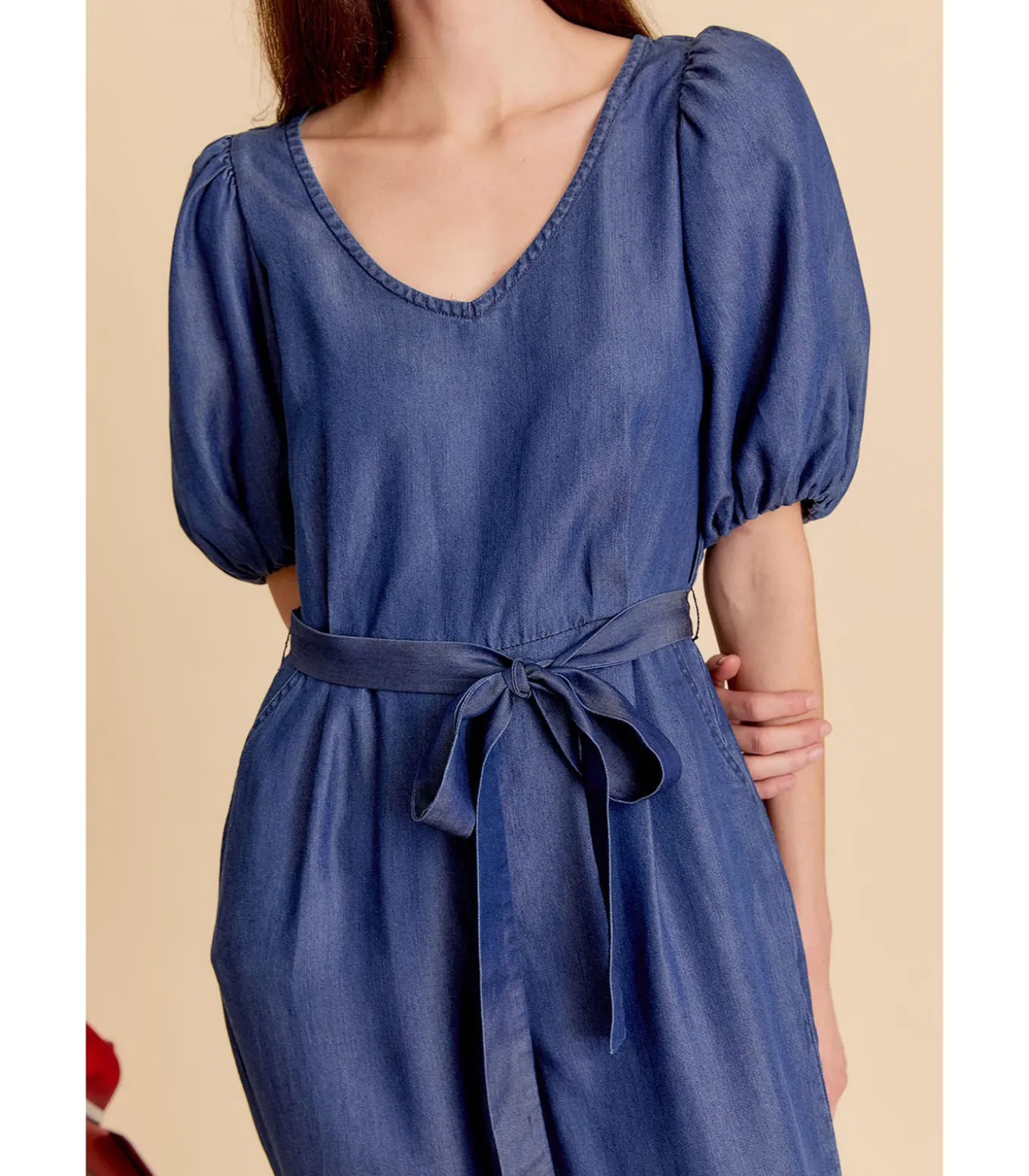 Be the first to review “Blauwe jumpsuit met strik aan de taille en korte pofmouwen” Reactie annuleren