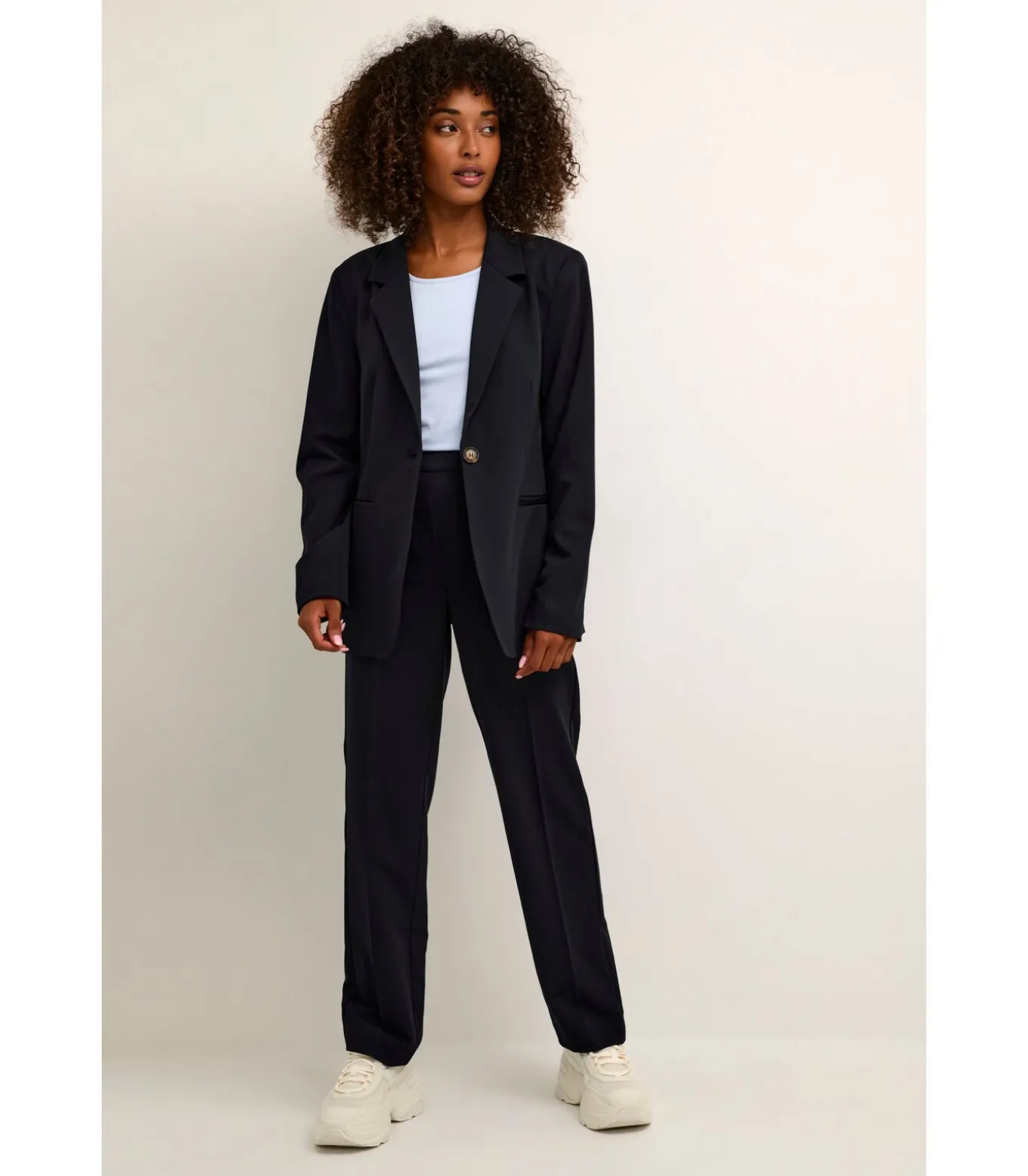 Samenstelling: 77% Polyester (gerecycled), 18% Viscose, 5% Elastaan