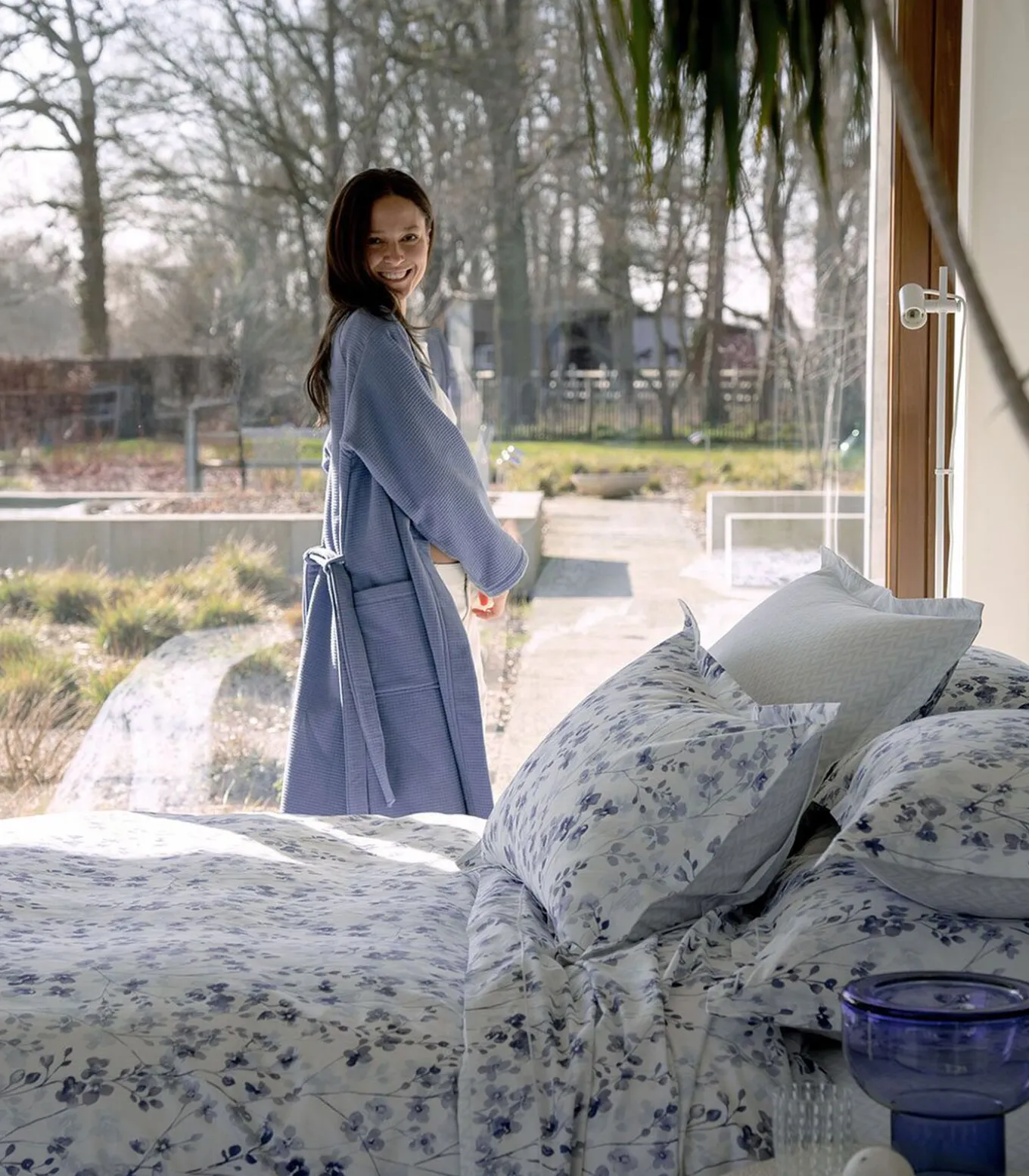 Aquarelblauwe bloemenprint op optisch witte achtergrond