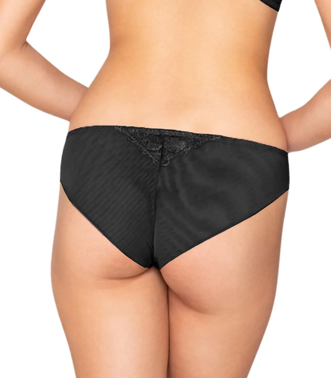 Een delicate Brazilian die je rondingen sensueel omhelst. Subtiel geplaatst kant en satijn voegen een onweerstaanbaar vleugje verfijning toe. Het zal je vrouwelijkheid versterken met een vleugje durf.