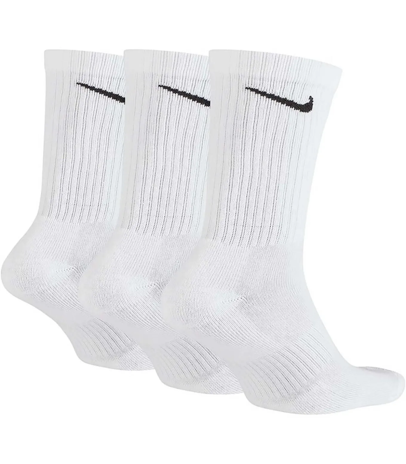 Kleur: Wit 100 Specificaties: 3pack sokken gemaakt van katoenmix met Dri–FIT technologie die de huid van de voet droger houdt. Ze zijn voorzien van een sponszool voor meer comfort en demping en een geribbelde band op de voetboog voor betere ondersteuning en grip. Halve kuithoogte en geribde zoom met Swoosh–logo.