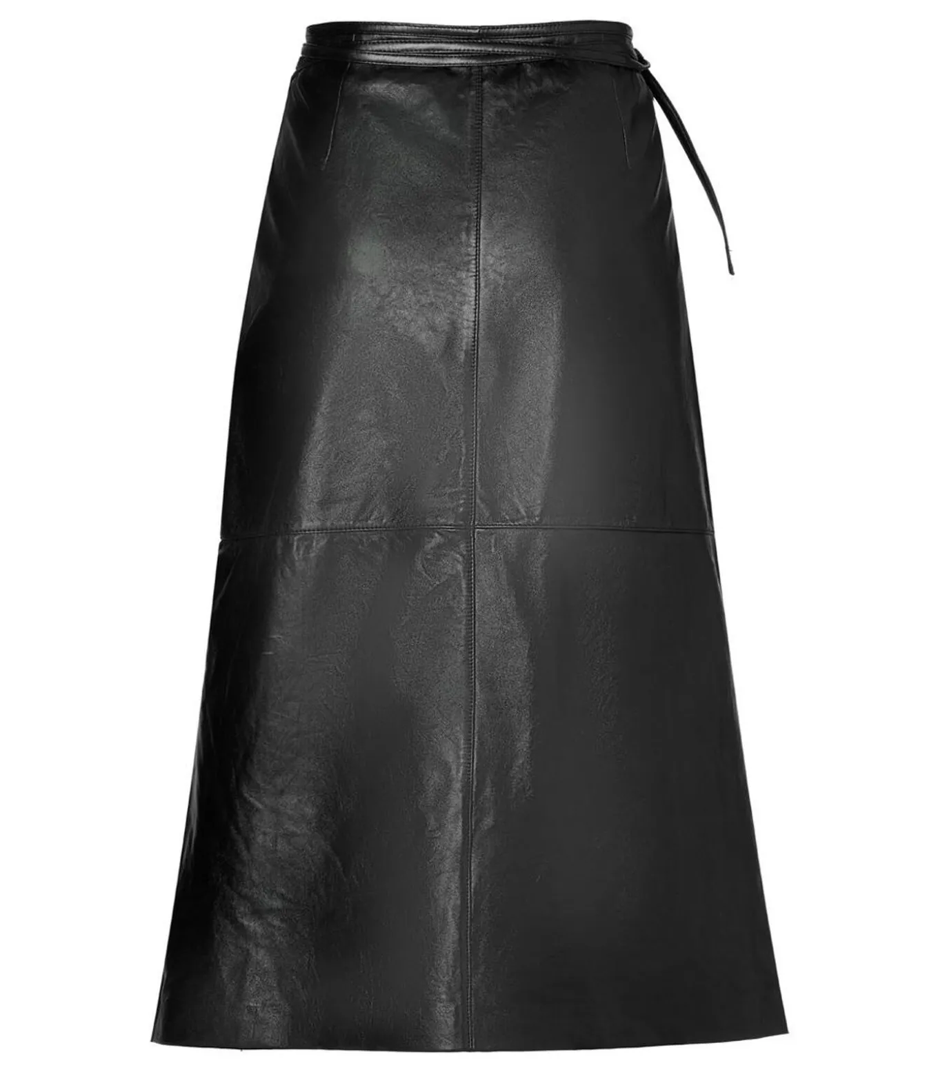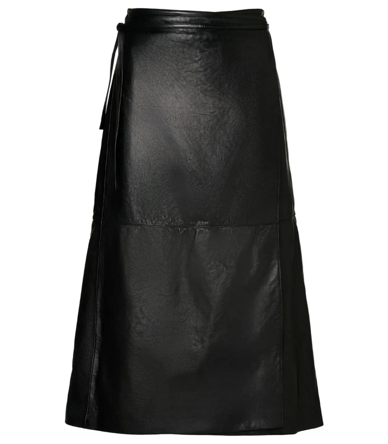 Deze zwarte leren overslagrok is een veelzijdige en stijlvolle toevoeging aan elke garderobe. Het licht uitlopende model dat tot halverwege de kuit valt, creëert een elegant en flatterend silhouet. De striksluiting aan de taille voegt niet alleen een speels accent toe, maar maakt de pasvorm ook eenvoudig aan te passen. Dankzij de klassieke zwarte kleur is de rok eindeloos te combineren: van een chique kantooroutfit met blouse tot een feestelijke avondlook met trui en enkellaarsjes. Het hoogwaardige leer zorgt ervoor dat de rok zijn vorm behoudt en met de tijd nog mooier wordt. De overslagstijl geeft een moderne twist, waardoor dit een zelfverzekerd en stijlvol item is voor elke gelegenheid.