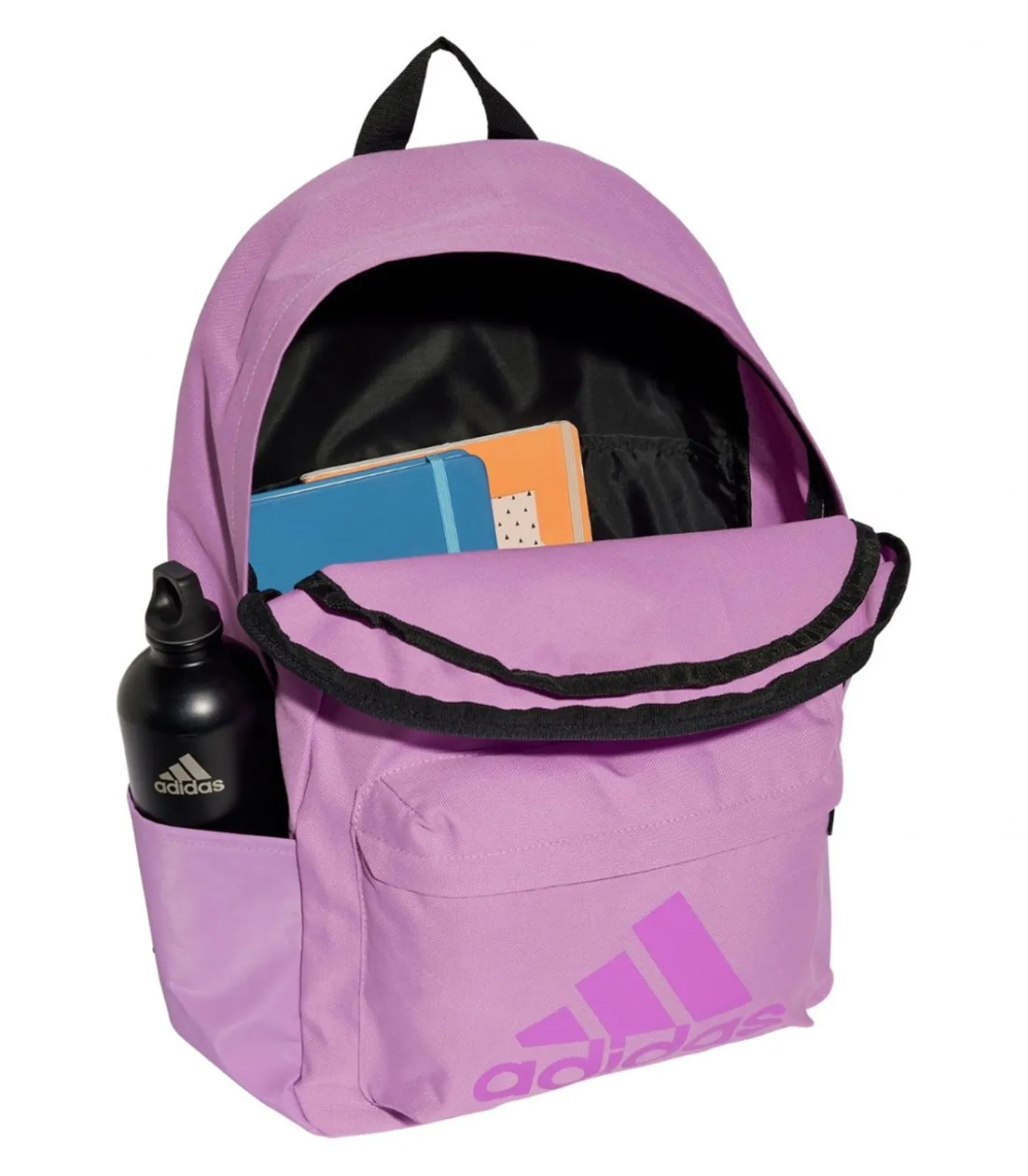 Adidas, de iconische embleem van sport – Rugzak in Paarse kleur, Kledingstof gemaakt van 100% polyethyleen, exterieur en interieur bedoeld voor hergebruik met materialen van 100% recycleerd polyester. Het oppervlak van het stof is een stijf weefsel. De hoogte en breedte van de rugzak zijn respectievelijk 44cm en 36cm, de inhoud bedraagt 27,5L en de diepte 15cm. Het bevat zes zakken, een voorzak, twee steekzakken, een rits en een zijzak. Het binnen– en hoofdcompartiment zijn voorzien en het hoofdcompartiment is bedoeld om laptops te bewaren. Het handvat van de rugzak is ingevoerd met een verstelbaar en gevoelsgevoelig schouderriem. De rugzak wordt gemaakt volgens duurzaam technologie. Het ontwerp van het logo is eenvoudig en modern, de rugzak wordt verslagen met ritssluiting.