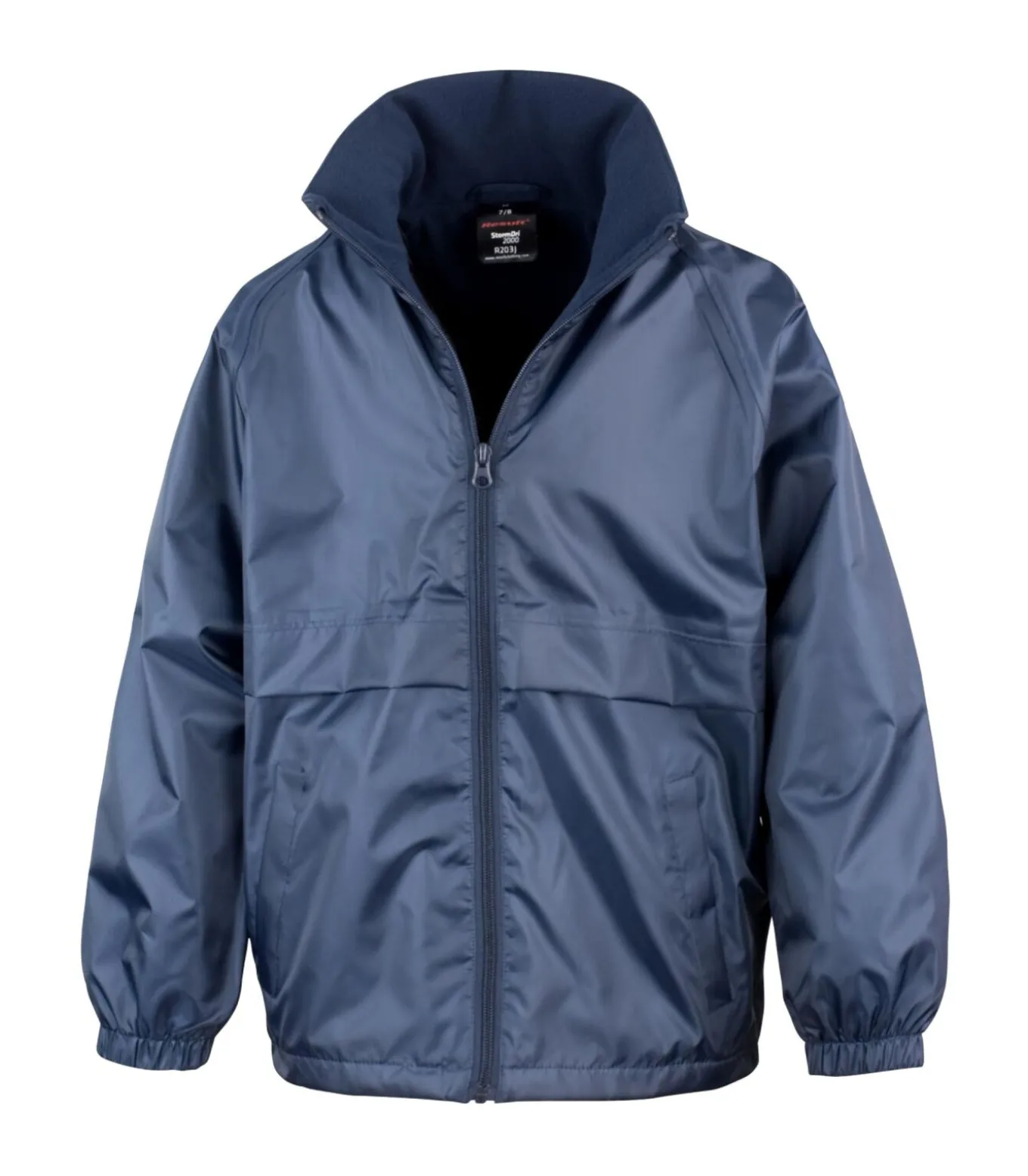 De productomschrijving beschrijft de specificaties van een kinder/jeugd core jacket van het merk Result. Gemaakt van een StormDri 210T PU gecoate polyester buitenkant en 100% polyester 180g/m² microfleece voering biedt deze lichtgewicht jas optimale bescherming tegen de elementen. De volledig getapete naden verbeteren de waterdichtheid terwijl de 5mm spiraal nylon rits over de hele lengte aan de voorkant zorgt voor gemakkelijk aan– en uittrekken. Functionele eigenschappen zijn onder andere zijzakken met boorden een opvouwbare waterdichte capuchon reflecterende tape op het onderste rugpand voor betere zichtbaarheid en elastische manchetten voor een goede pasvorm.De merkfilosofie benadrukt Result’s toewijding aan het creëren van prestatiegerichte jassen die stimulerend inspirerend en innovatief zijn en de essentie van het buitenleven vastleggen zowel nu als in de toekomst.