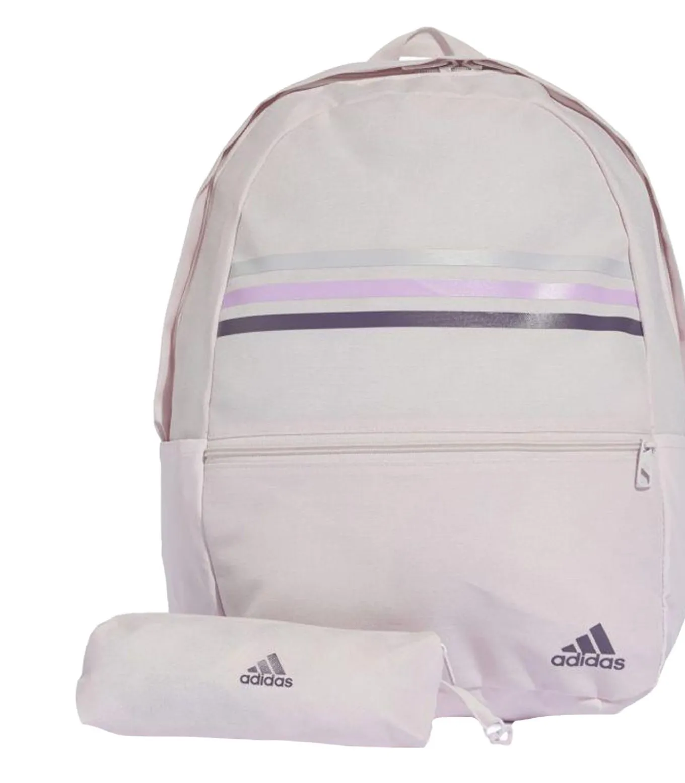 Adidas Classic roze rugzak, gemaakt van synthetisch materiaal. De hoogte is 44cm, de breedte 36cm en de lengte 15cm. Het inhoud heeft een capaciteit van 27.7Liter. De rugzak bevat 1 voorzak met ritssluiting en 1 hoofdcompartiment. Het ontwerp is uitgerust met logo en streepjesdetail. Er is een verstelbare schouderriem en een grijpgreep aanwezig. De rugzak wordt vastgehouden door tweewegrits.