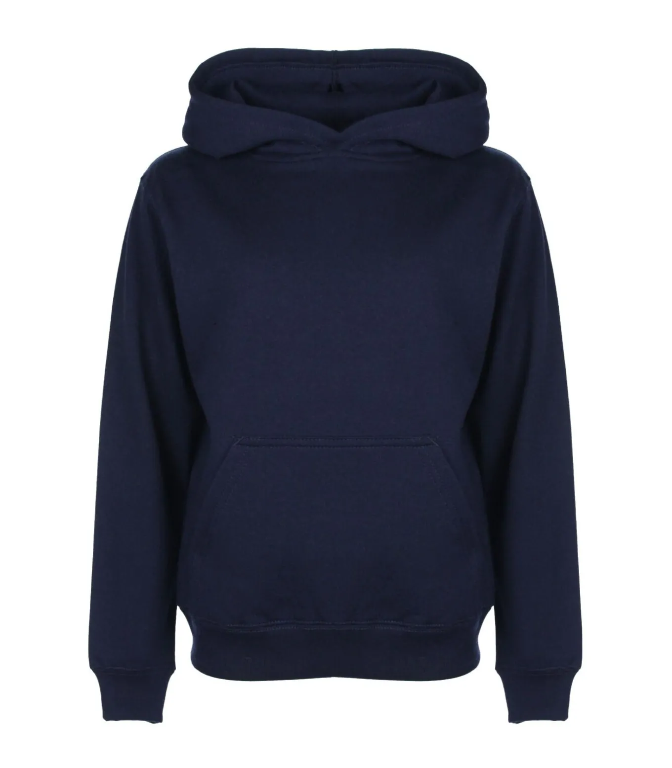 Dit kledingstuk is een uniseks sweater of hoodie met capuchon voor kinderen gemaakt van een duurzame 300 GSM (gram per vierkante meter) stofmix van 80% katoen en 20% polyester. Het heeft een buidelzak in kangoeroe–stijl aan de voorkant ingezette mouwen en versterkte stiksels met dubbele naalden voor extra duurzaamheid. De hoodie heeft elastische ribboorden en manchetten van lycra–materiaal voor een goede maar comfortabele pasvorm. De capuchon zelf is gevoerd met een dubbele laag van dezelfde stof als de body voor extra warmte en bescherming. In dit ontwerp zijn trekkoordsluitingen weggelaten voor een gestroomlijnde esthetiek. Verkrijgbaar in verschillende maten voor kinderen van 3 tot 13 jaar. De borstomvang varieert van 26 inch voor de kleinste maat tot 34 inch voor de grootste optie zodat de pasvorm geschikt is voor verschillende stadia van groei en ontwikkeling.