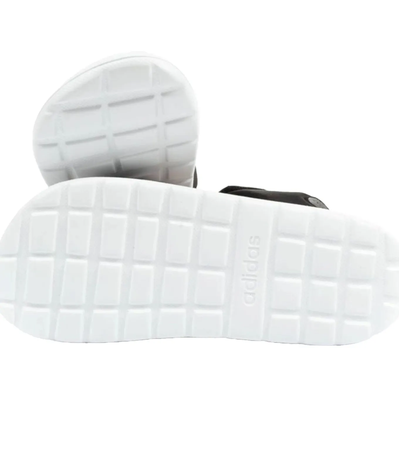 Adidas Comfort Zwarte Sandalen met eenvoudig en duurzaam synthetisch bovenstuk en rubber uitzool. Deze sandalen zijn slip–eenvoudig en vlak, voor maximale comfort. Het ontwerp is gedecoreerd met het bekende Adidas–logo voor een moderne en eenvoudige stijl. De opzet is open, zodat u snel kan ombuigen naar uw voet. Verder verzorgt een aanraaksluiting dat deze sandalen onmiddellijk te dragen zijn en snel te verwijderen.