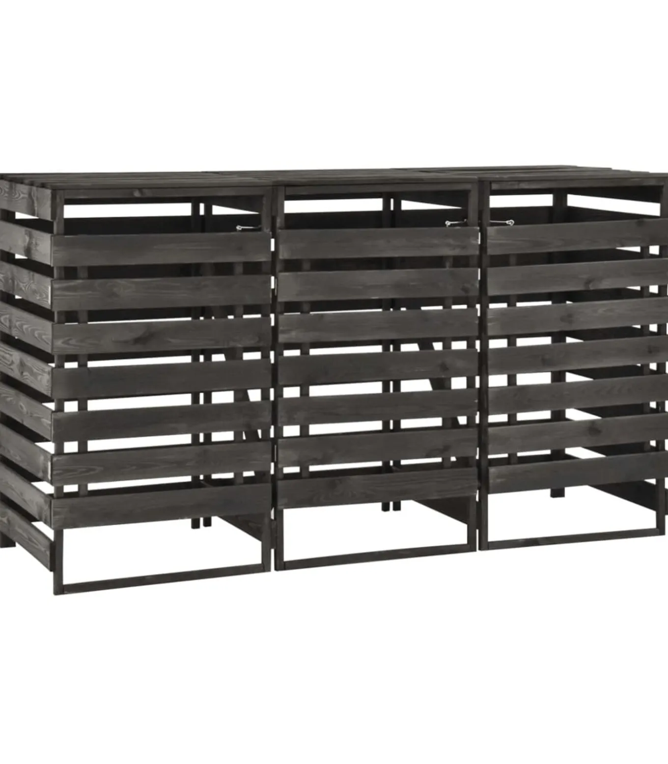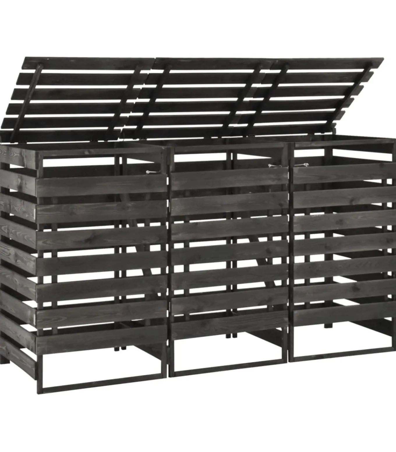 De berging heeft deksels die kunnen worden geopend voor gemakkelijke toegang tot de afvalcontainers en om het afval snel en eenvoudig te deponeren. Daarnaast heeft de voorzijde drie deuren zodat de afvalbakken eenvoudig verwijderd en geleegd kunnen worden. De berging is uitgerust met sloten aan de voorzijde om de deuren goed af te sluiten. Hij is gemaakt van massief grenenhout met verfafwerking waardoor deze berging zeer stevig, duurzaam en rotbestendig is. Hij kan 3 afvalbakken van 240 L opbergen en past mooi in je tuininrichting.