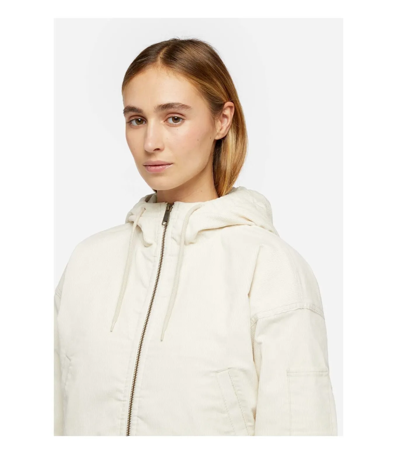 Kleur: Whitecap Gray. Samenstelling: 100% polyester. Pasvorm: Regular. Details: Gemaakt van zacht corduroy met gewatteerde voering, verstelbare capuchon met trekkoord, schuine zakken, mouwzak, elastische zoom en manchetten. Gebruik: Ideaal om de kou comfortabel en stijlvol te trotseren, perfect voor casual en streetwear looks.