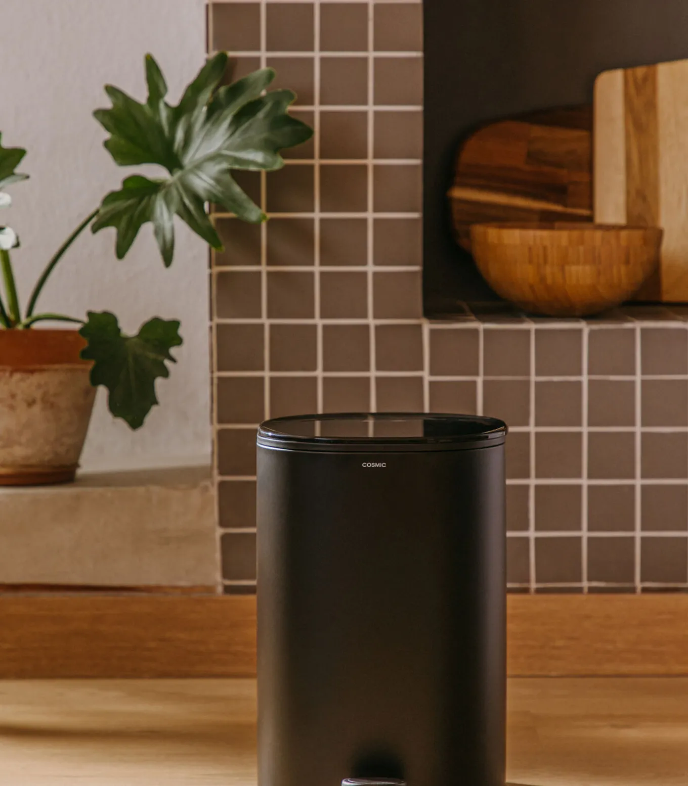 De Cosmic Essentials afvalbak is met zijn moderne en compacte design ideaal voor kleine badkamers en keukens. Dankzij het pedaalsysteem opent het deksel gemakkelijk en zonder direct contact, wat zorgt voor hygiëne. De afvalbak is gemaakt van duurzame materialen, heeft een inhoud van 5 liter en is 285 x 155 x 295 mm groot, perfect om kleine ruimtes netjes te houden.