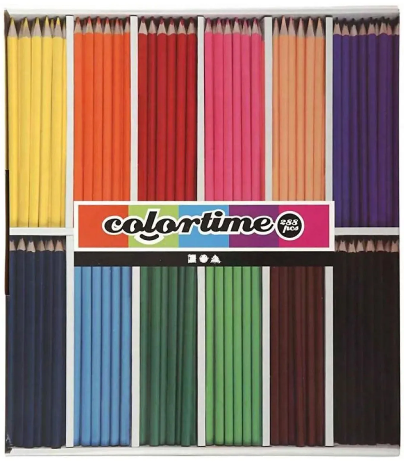 Creativ Company kleurpotloden set – driehoekig, 288 stuks, basiskleurenMet deze kleurpotloden set van Creativ Company maak je de mooiste tekeningen in alle basiskleuren! De driehoekige kleurpotloden liggen heerlijk in de hand en zijn ideaal voor zowel kinderen als volwassenen. Dankzij de stevige 3 mm vulling kun je eindeloos kleuren zonder dat de punt snel breekt.In de kartonnen doos vind je maar liefst 288 kleurpotloden, verdeeld over 12 prachtige kleuren. Perfect voor op school, de kinderopvang of gewoon thuis aan de knutseltafel. Laat je creativiteit de vrije loop en geniet van urenlang kleurplezier!Extra informatieBevat 288 driehoekige kleurpotloden in 12 basiskleurenErgonomisch ontwerp voor comfortabel kleurenStevige 3 mm vulling voor langdurig gebruikGeschikt voor kinderen en volwassenen