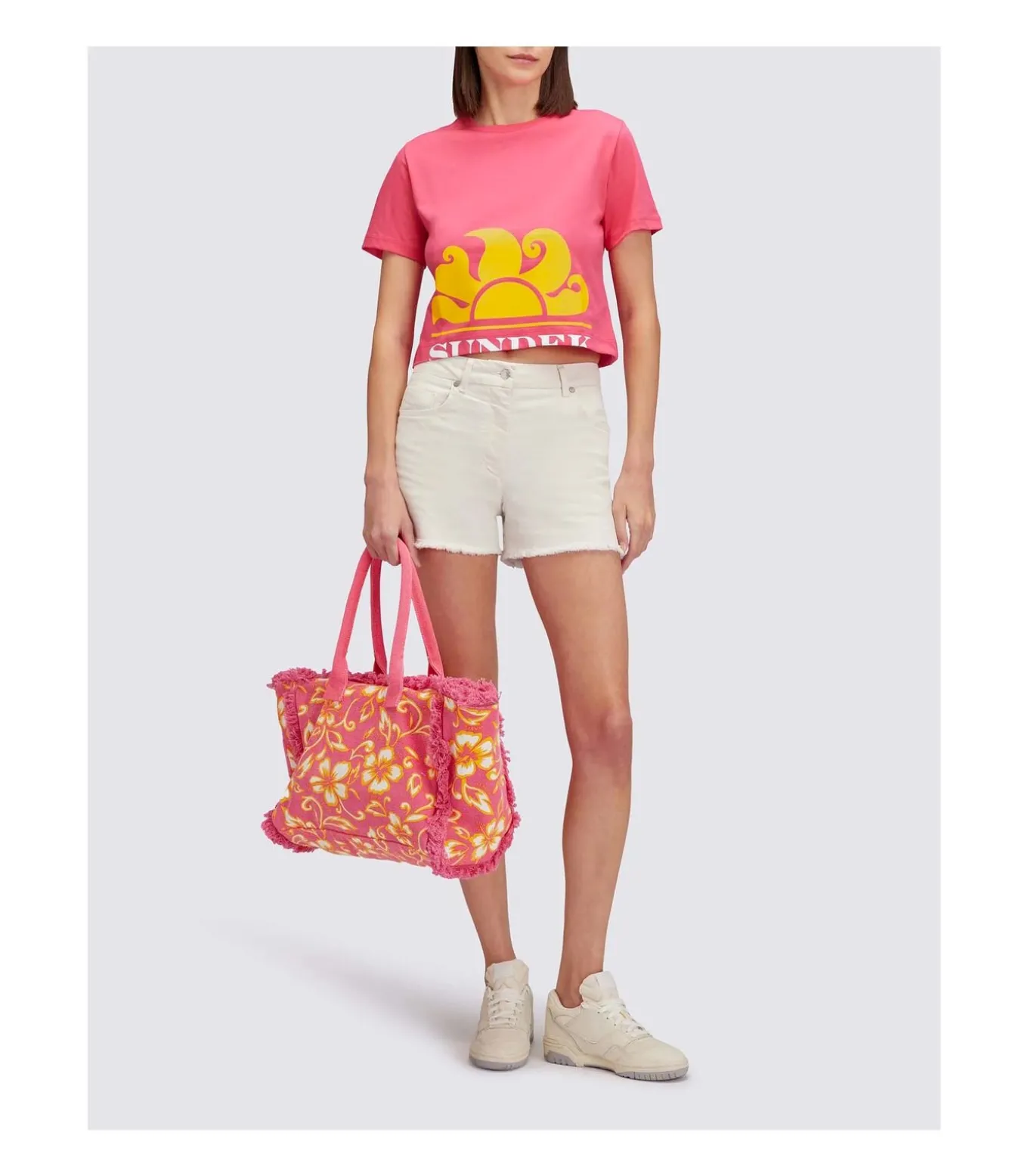 Kleur: Pitaya Samenstelling: 100% katoen Mouwen: Kort Halslijn: Ronde hals Lengte: Kort Pasvorm: Normaal Details: Dames cropped T–shirt met contrasterend Sundek–logo op de voorkant, geribbelde boord en ronde hals. Perfect te combineren met jeans of rokken voor een frisse en moderne look Gebruik: Ideaal om je zomeroutfits compleet te maken, perfect voor vrije tijd, het strand of informele avonden
