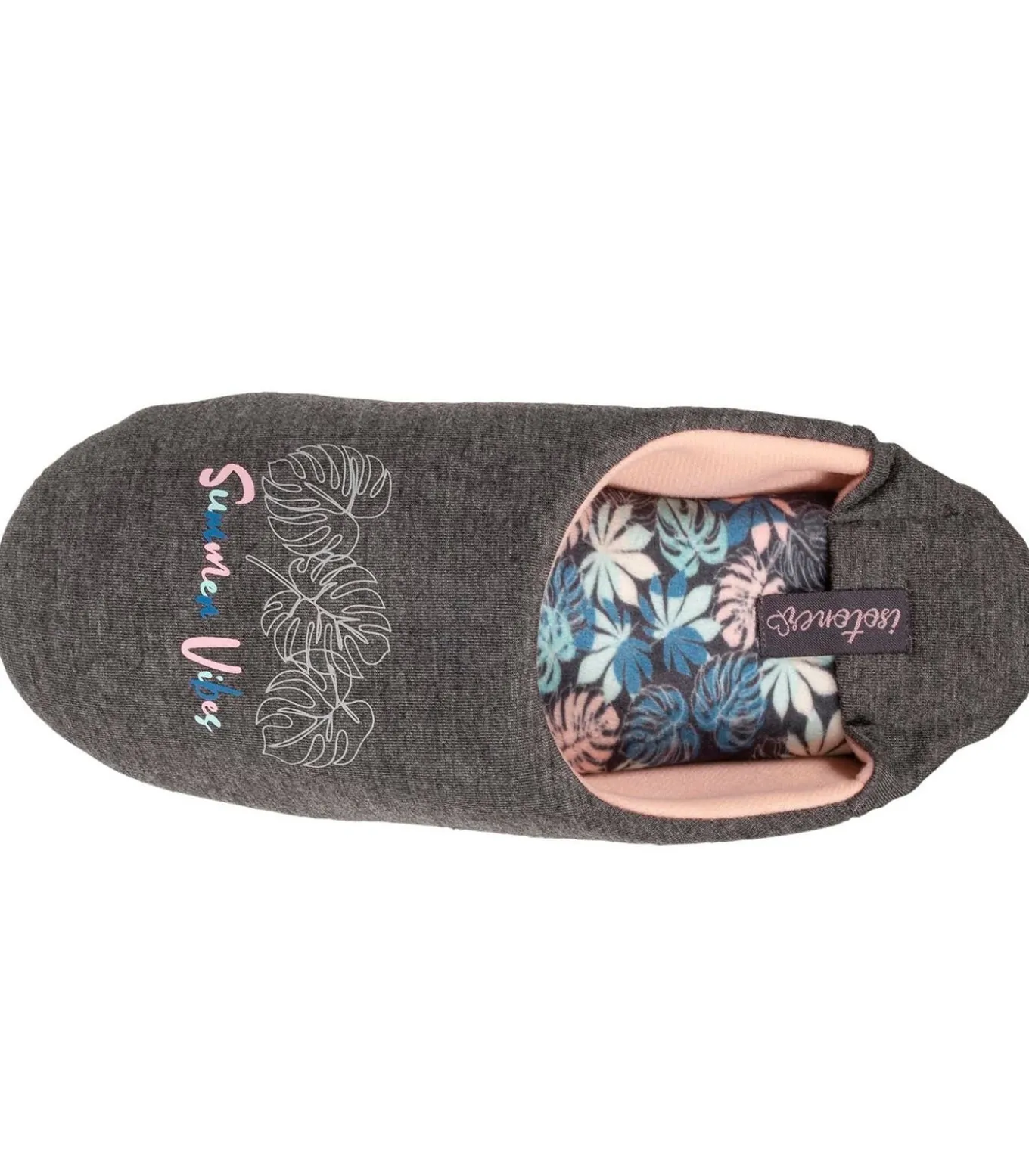 Deze pantoffels zijn zeer elegant dankzij de tropische motieven in rubberprint op de bovenkant van de pantoffel en in digitale print op de zeer zachte microvelours binnenzool. Deze pantoffels zijn gemaakt van ademend katoenen jersey. De stoffen zool heeft antislip noppen. Deze pantoffels zijn machinewasbaar op 30°C.