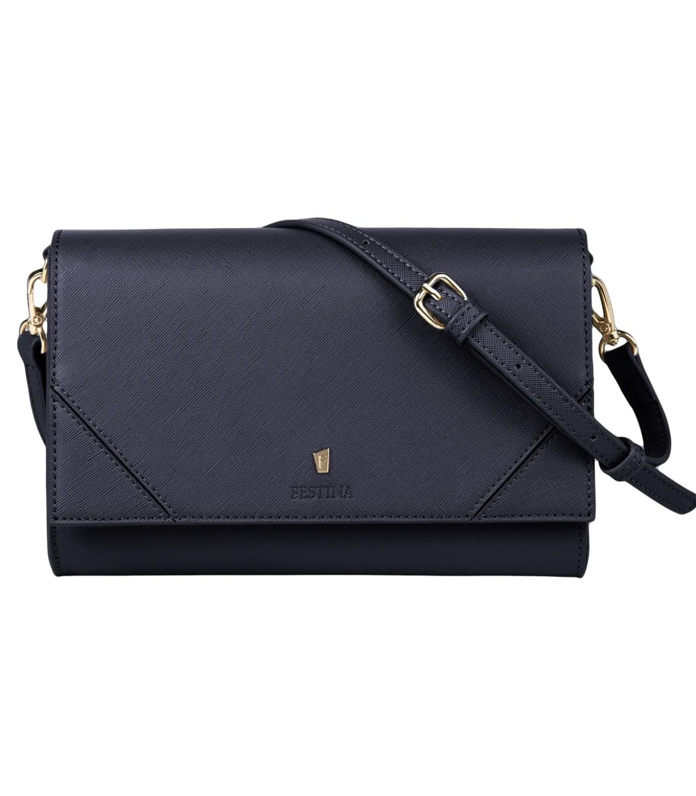 Festina’s gevierde “Mademoiselle” lijn wordt dit seizoen aangevuld met een nieuw aanbod damestassen. Deze crossbodytas is gemaakt van prachtig gestructureerd saffiano veganistisch leer (PU). Elk detail is delicaat vervaardigd, zoals de iconische handtekening F goud plaat, aanwezig in de hele collectie en onderstreept met een prachtig reliëf FESTINA logo. Het prachtig ontworpen product heeft kleurrijke, contrasterende en zeer praktische interieurs, ruim en toch compact met een ritsvak om al uw benodigdheden te organiseren. Deze marineversie heeft een contrasterende lichtblauwe binnenkant. De riem is in lengte verstelbaar. Dimensions: 230 x 55 x 155 mm, Material: Polyester