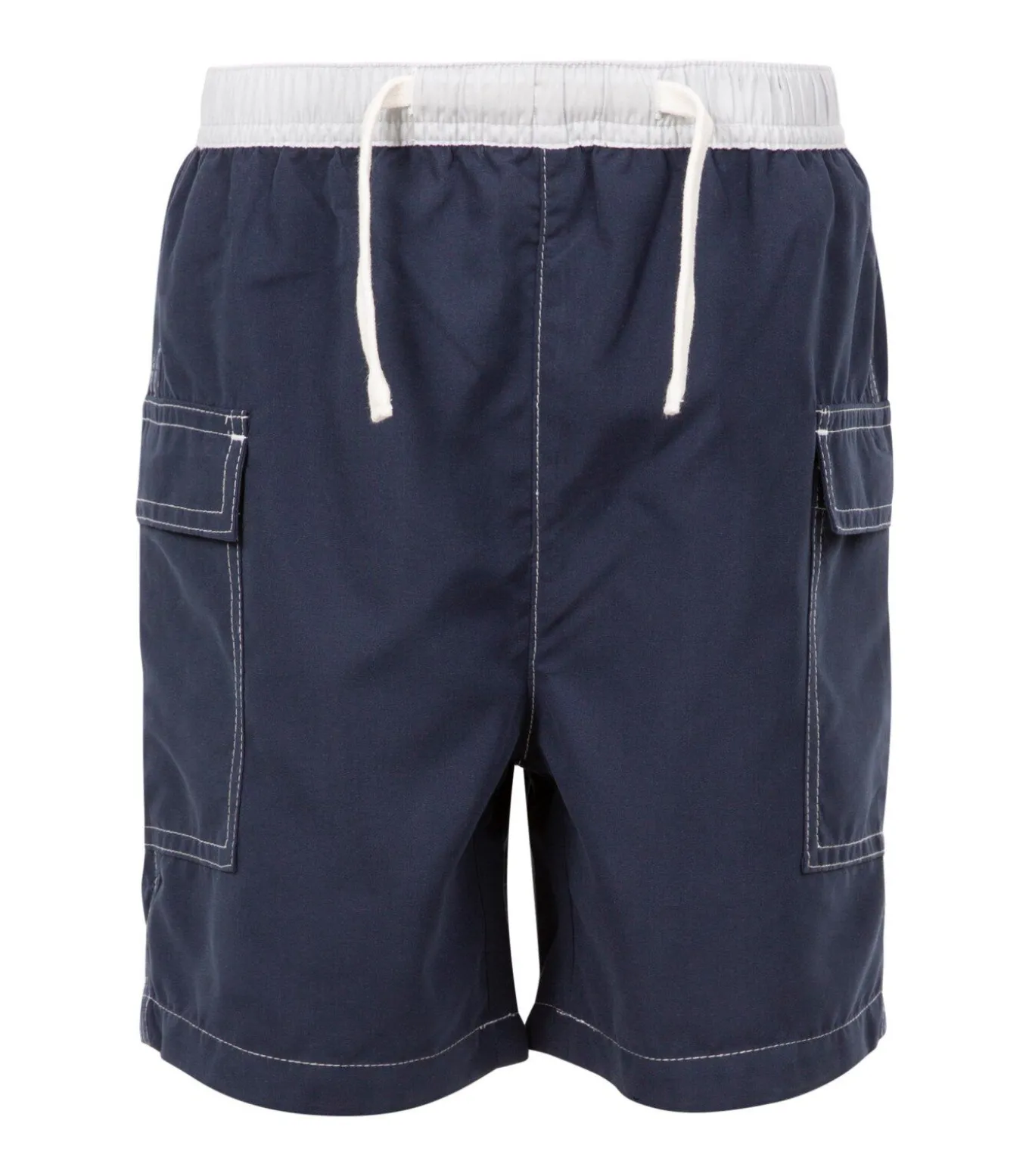 Deze kinderzwemshort van Trespass is gemaakt van 100% polyester microfiber. De geweven stof heeft een contrasterend ontwerp. Er zijn twee opgestikte zakken met klepsluiting. De taille is verstelbaar met een trekkoord en heeft elastiek voor een comfortabele pasvorm.